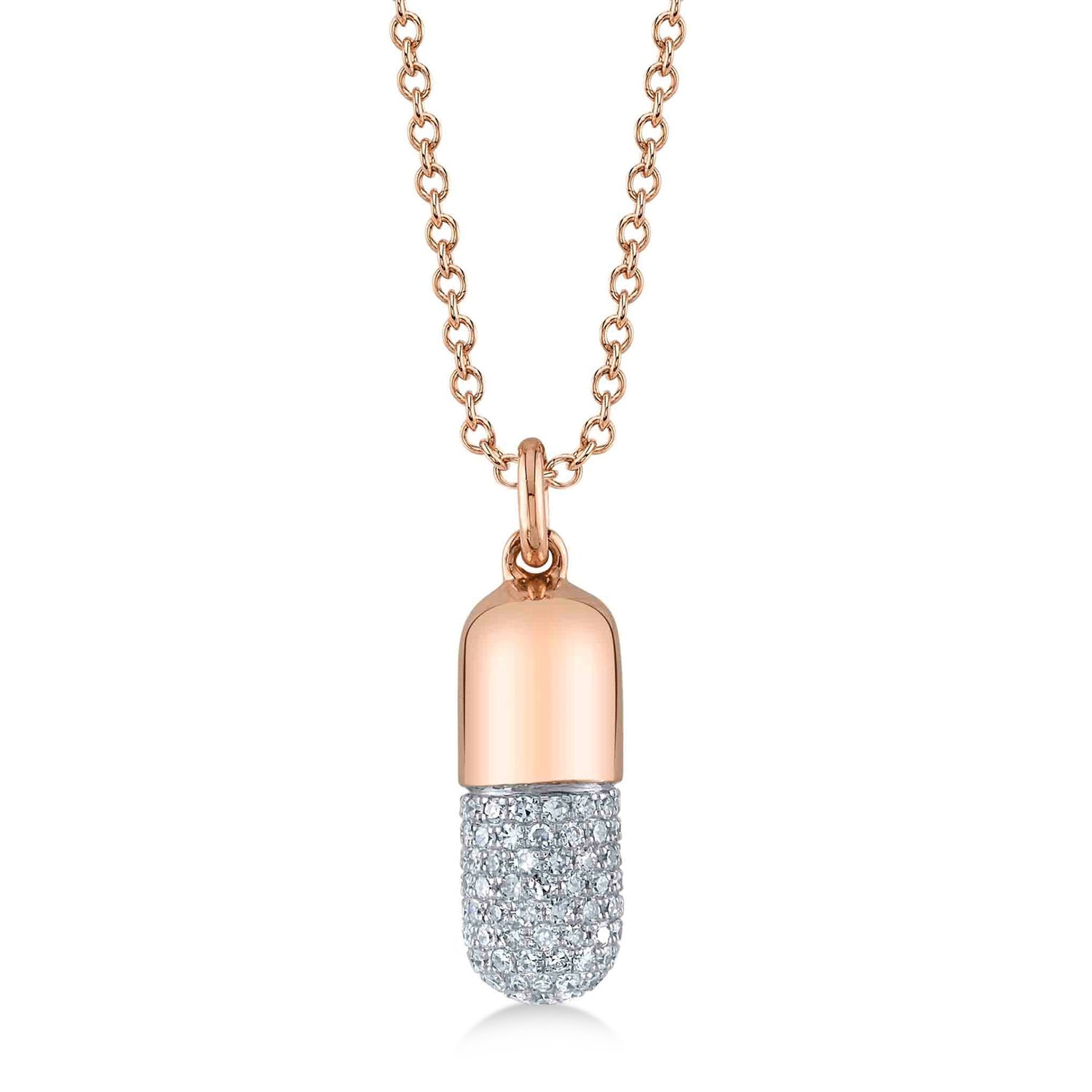 Diamond Pill Pendant Necklace 14K Rose Gold (0.32ct)