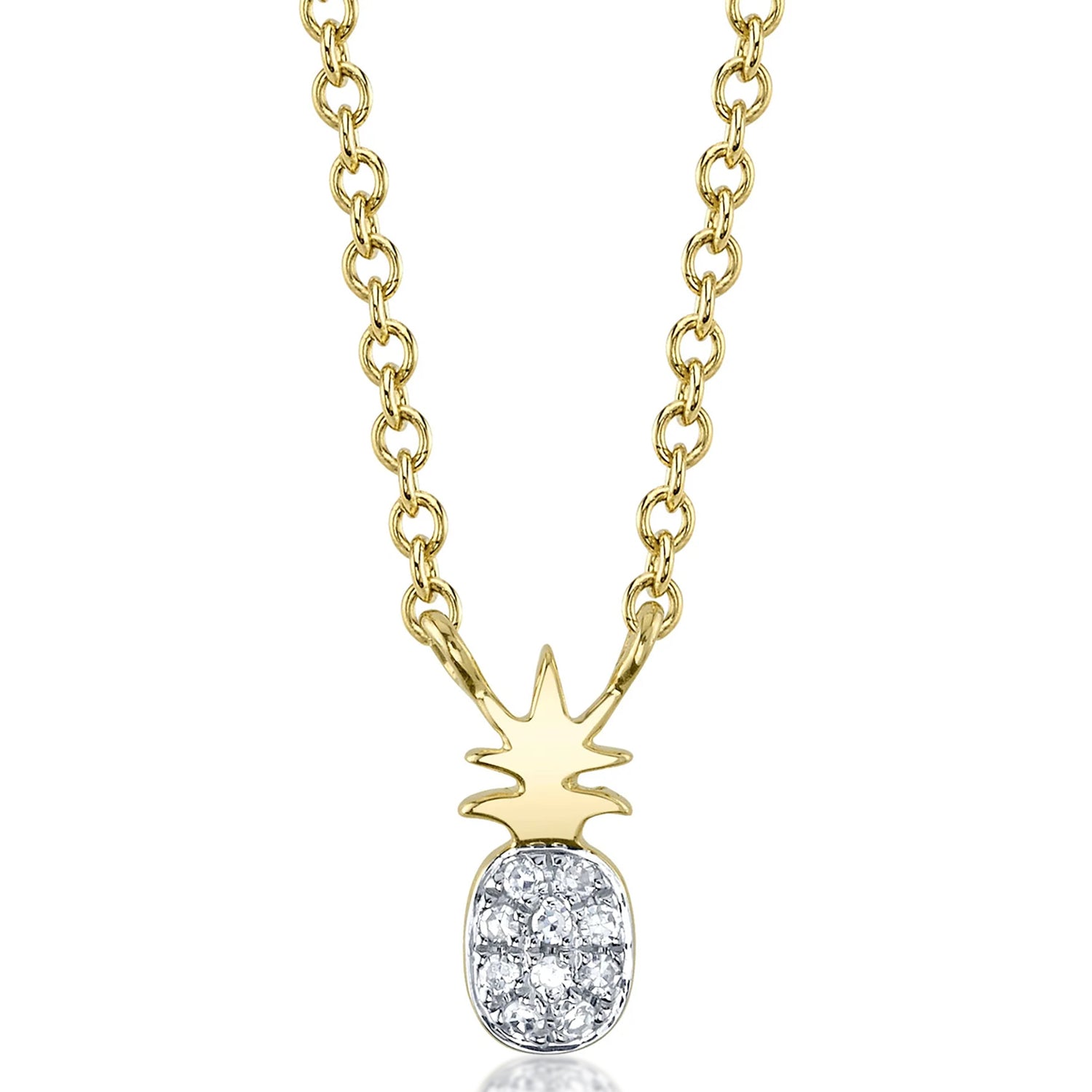 Diamond Pineapple Pendant Necklace 14K Yellow Gold (0.03ct)