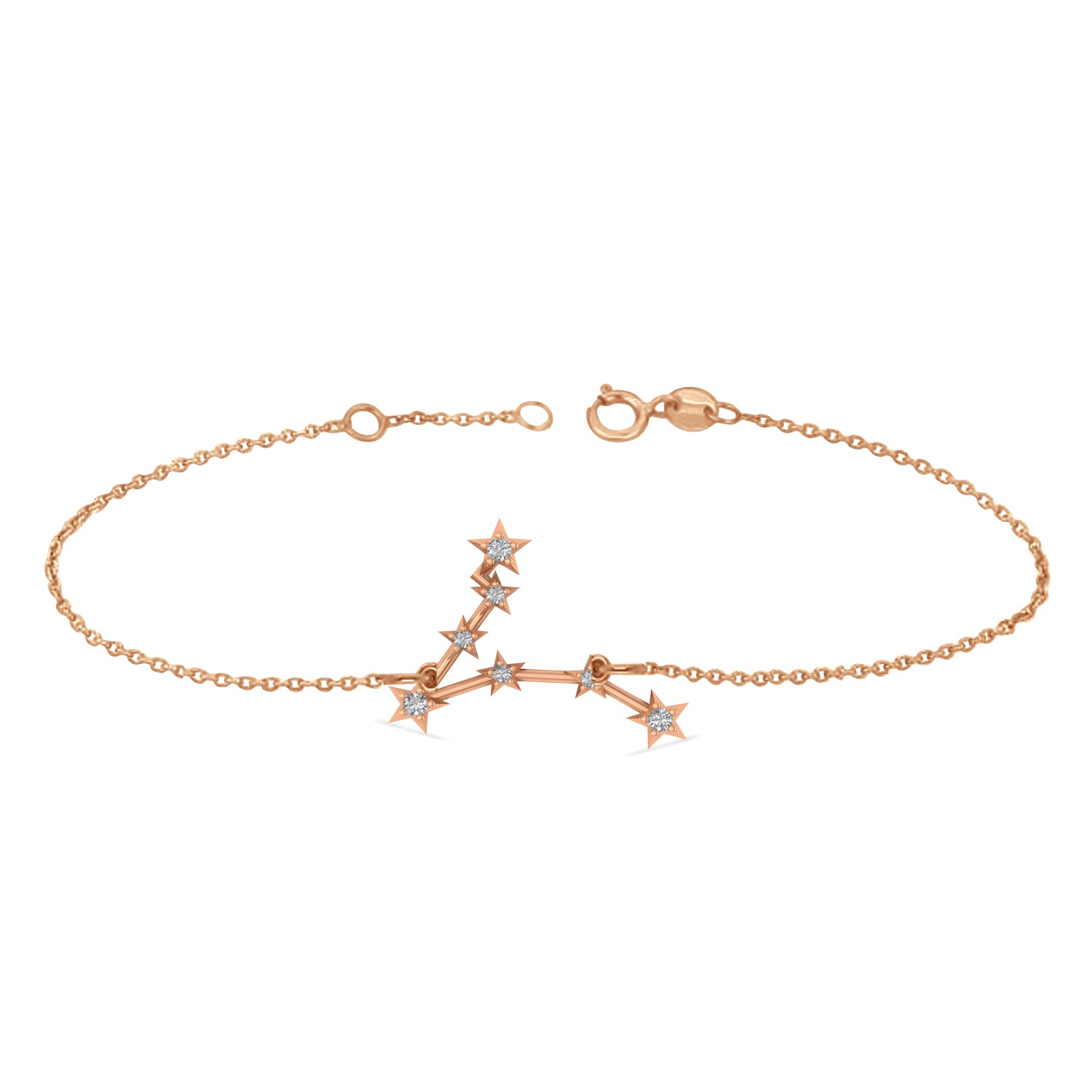 Diamond Pisces Zodiac Constellation Star Bracelet 14k Rose Gold (0.10