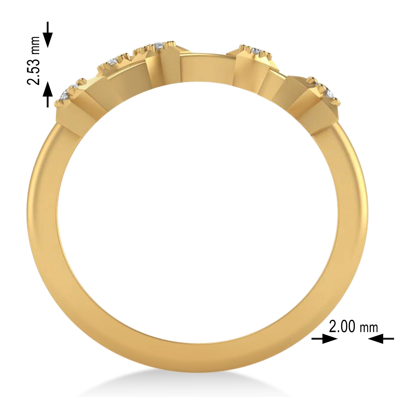 Diamonds are prong set, rated G-H for color and SI1-SI2 for clarity and have a combined 0.10 carat total weight.