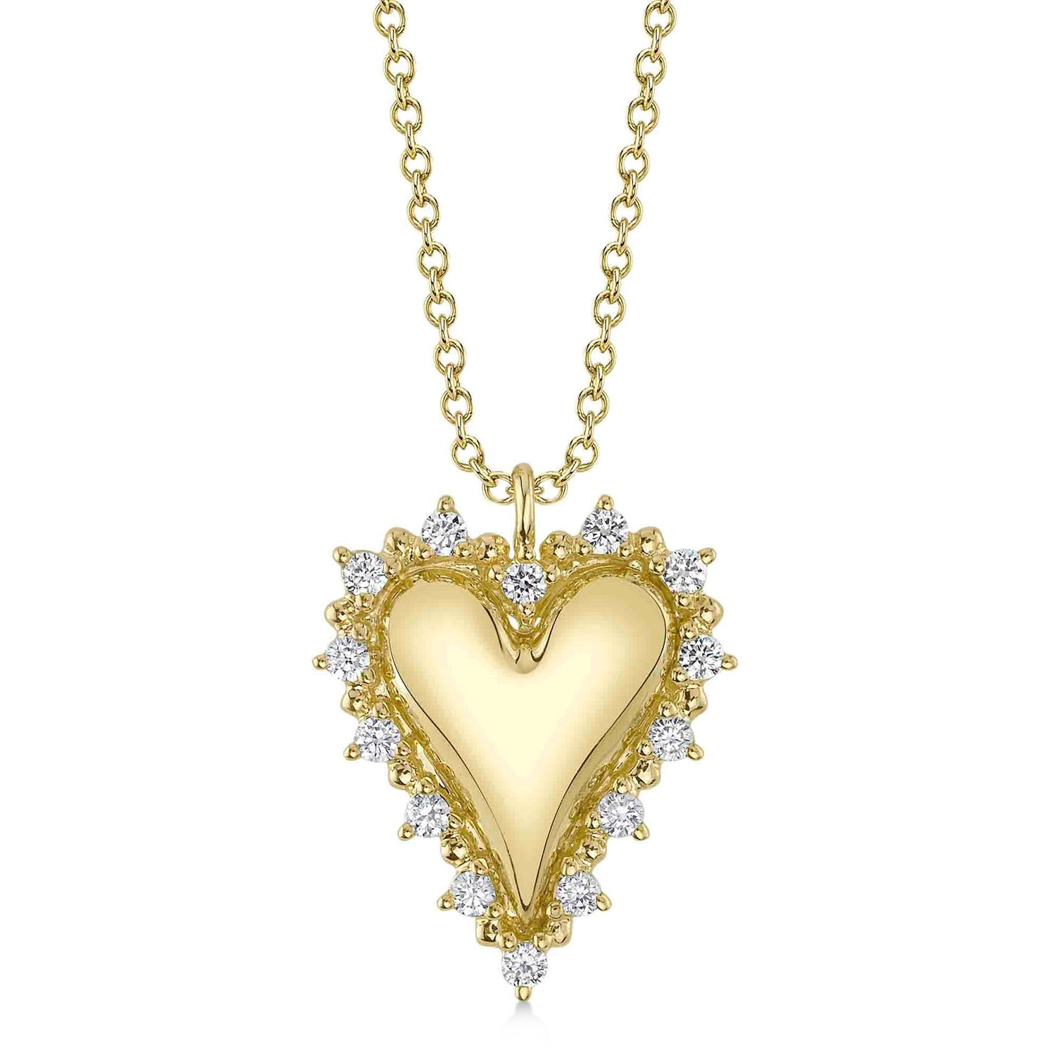 Diamond Puffed Heart Pendant Necklace 14K Yellow Gold (0.18ct)
