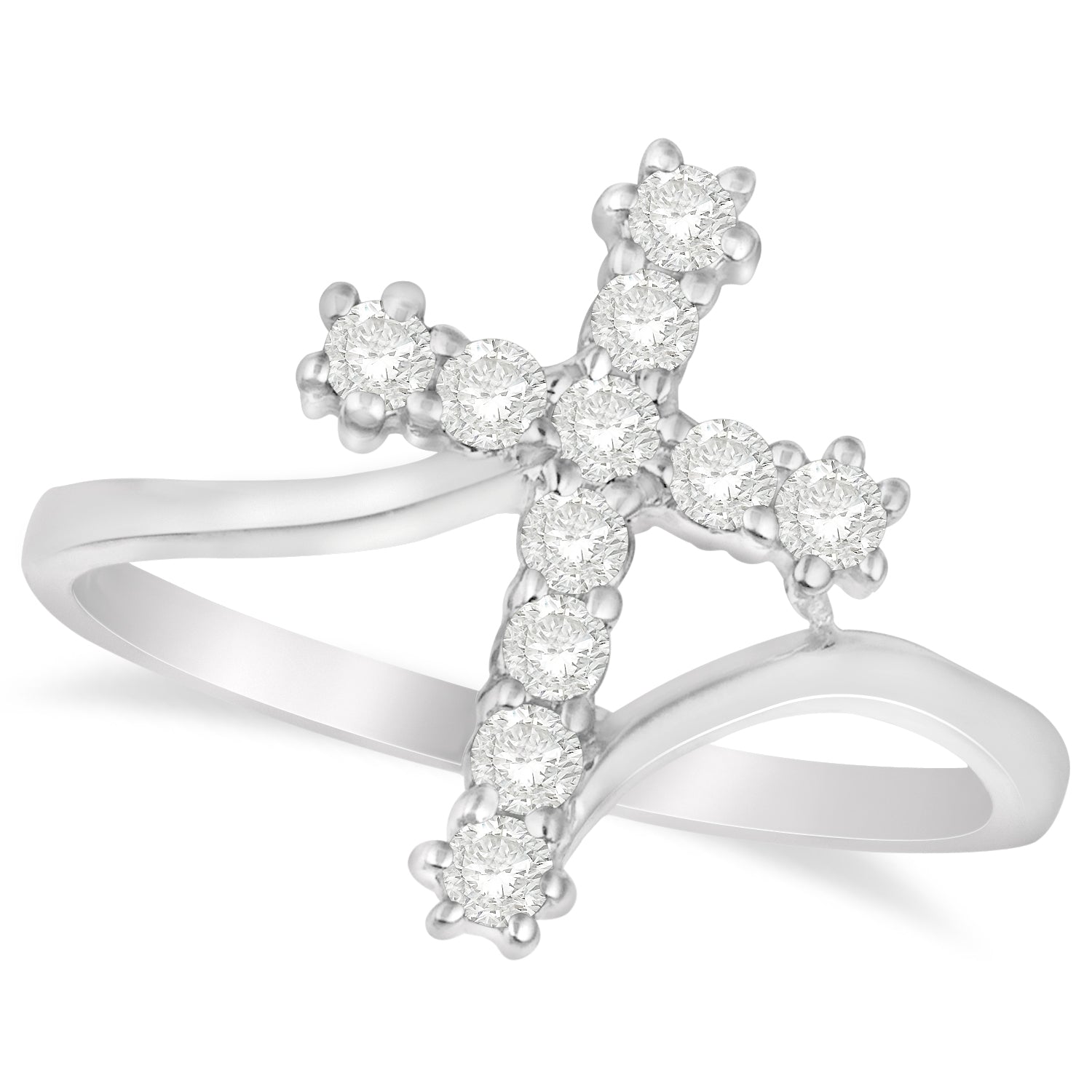 Diamond Religious Cross Twisted Ring 14k White Gold (0.33ct)
