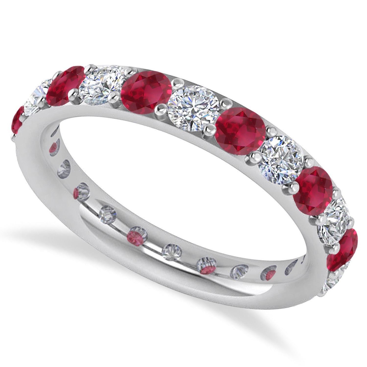 Diamond & Ruby Eternity Wedding Band 14k White Gold (2.00ct)