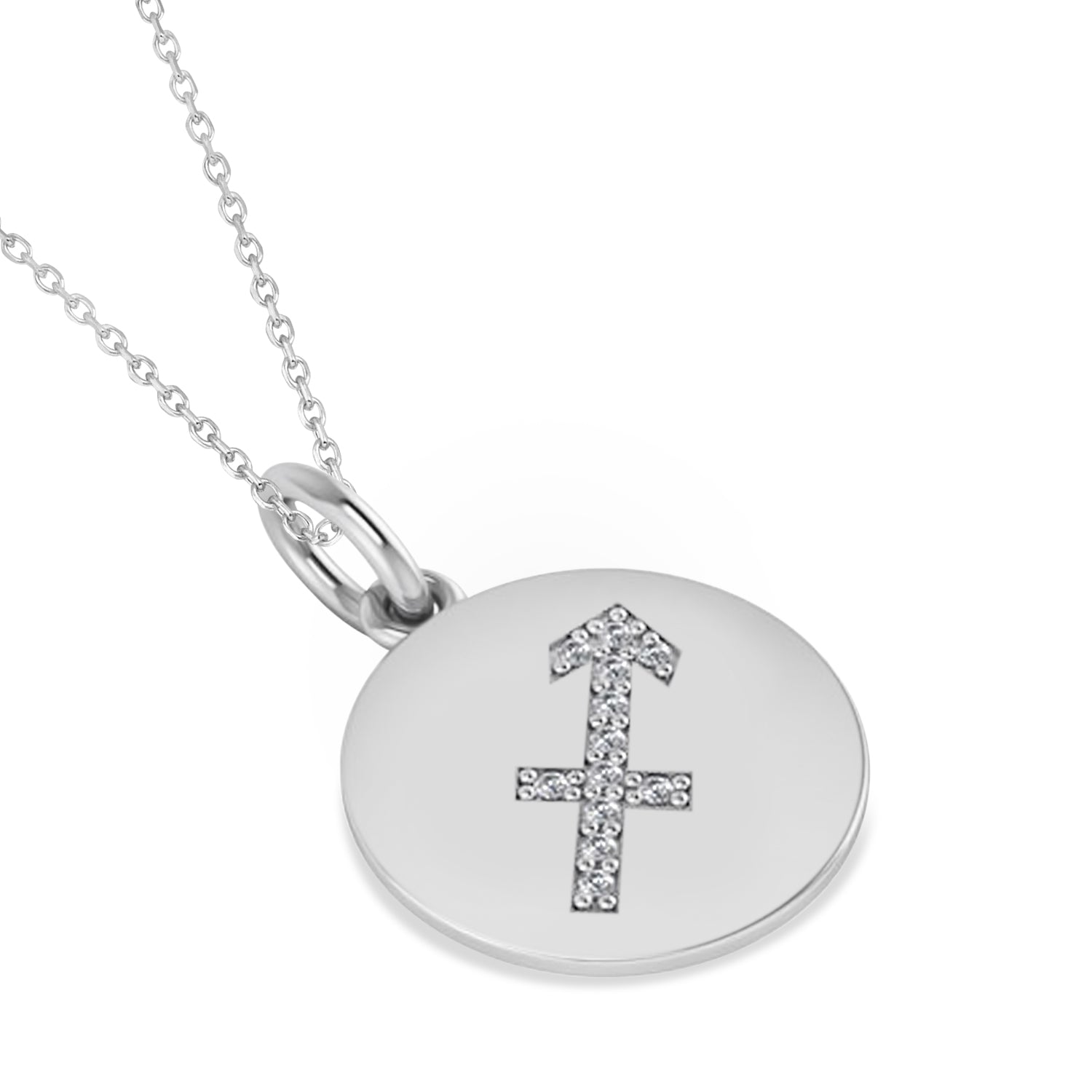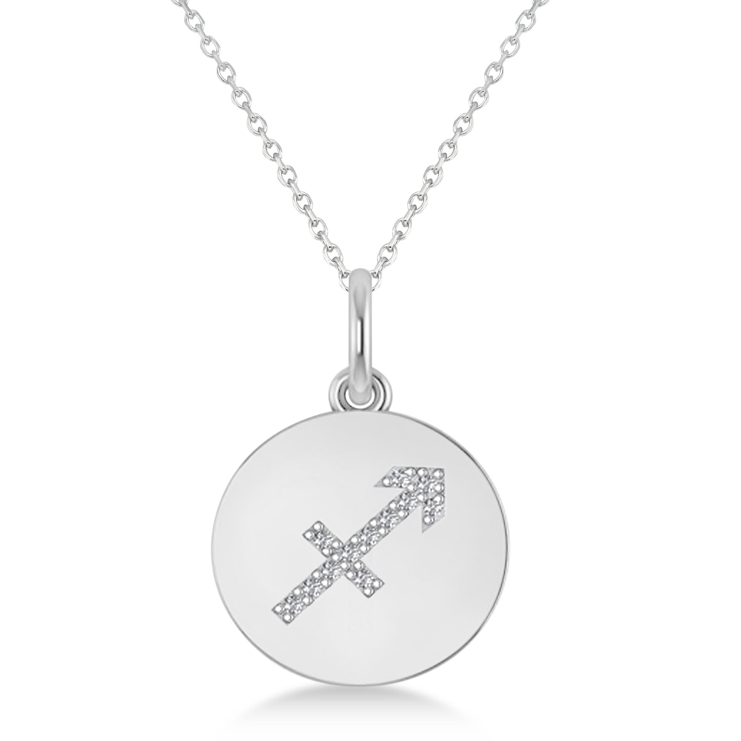Diamond Sagittarius Zodiac Disk Pendant Necklace 14k White Gold (0.06ct)