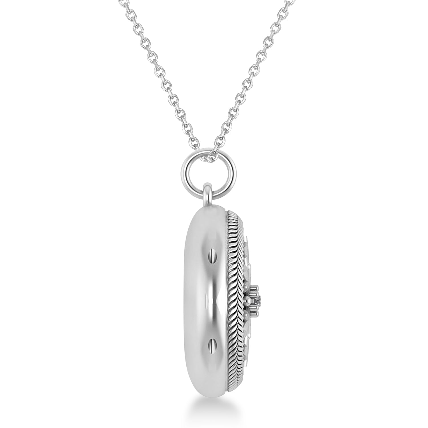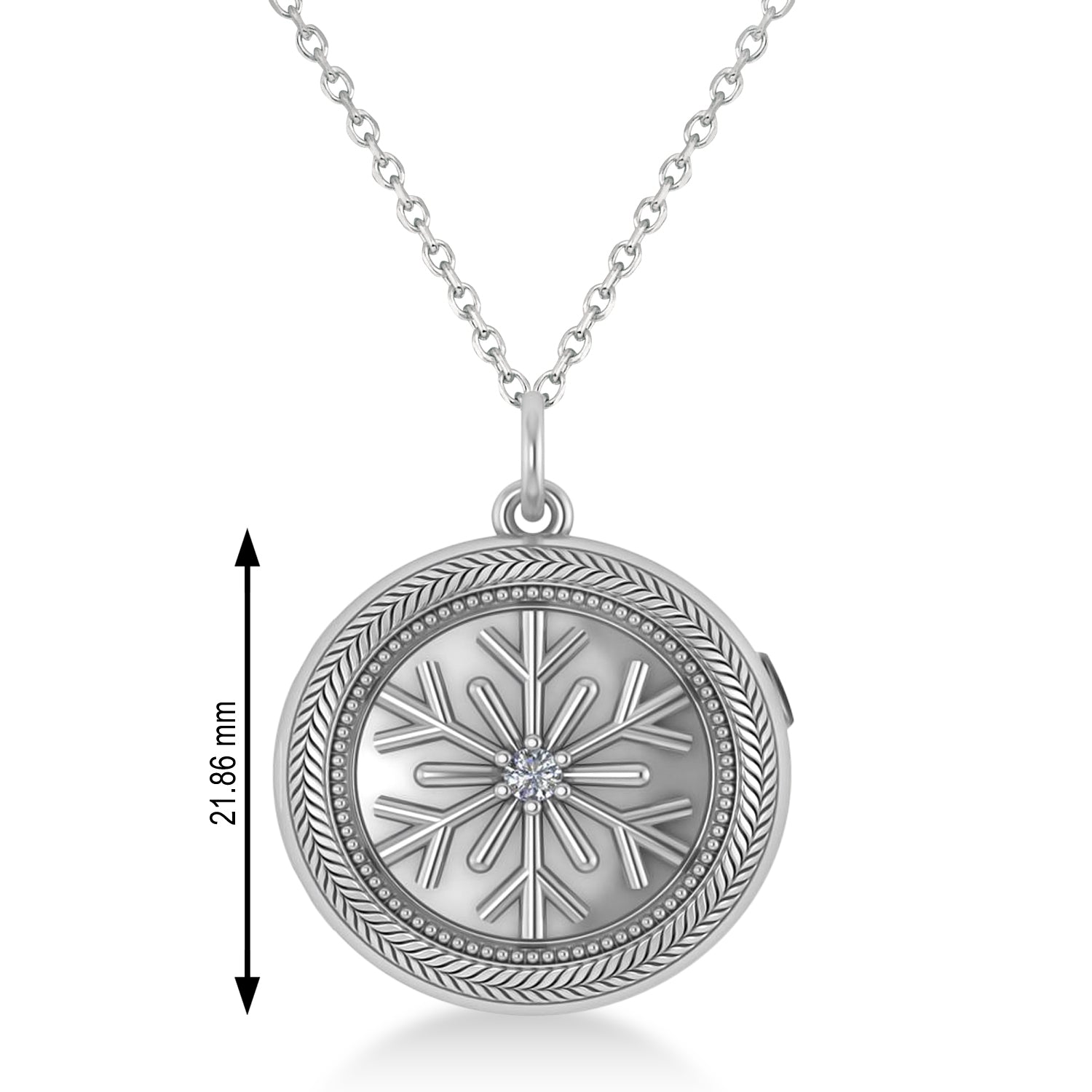 Diamond Snowflake Designed Locket Necklace 14k White Gold (0.05ct)