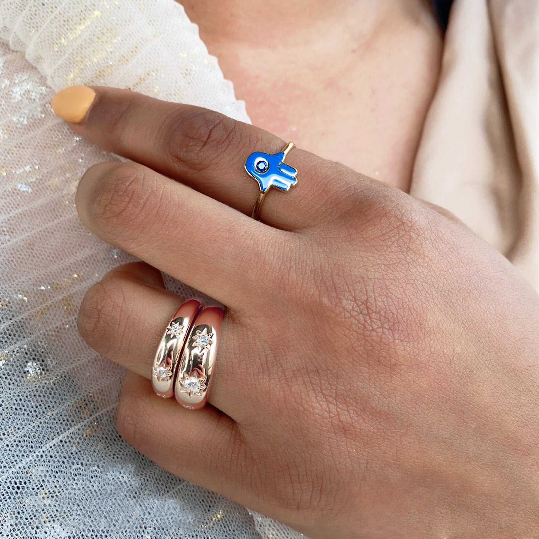 Elevate your style with the Diamond Star Wide Band Ring in 14K Rose gold. Featuring shimmering diamonds totaling 0.09 carats, this elegant band showcases a celestial-inspired star motif. Perfect as a standalone statement piece or stacked with other rings for a dazzling effect
