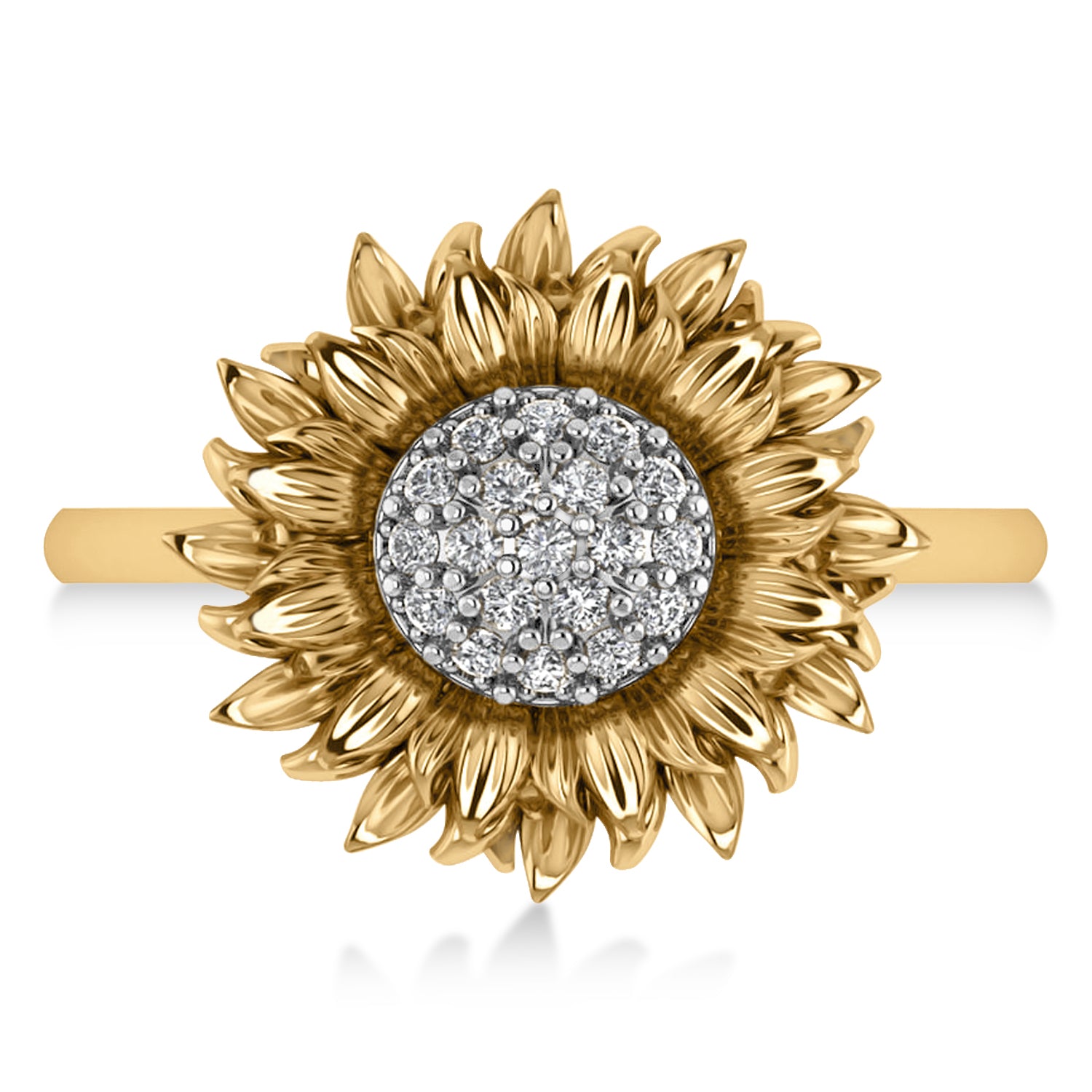 Give her the gift of warmth with this vibrant sunflower ring in 14k two-tone gold