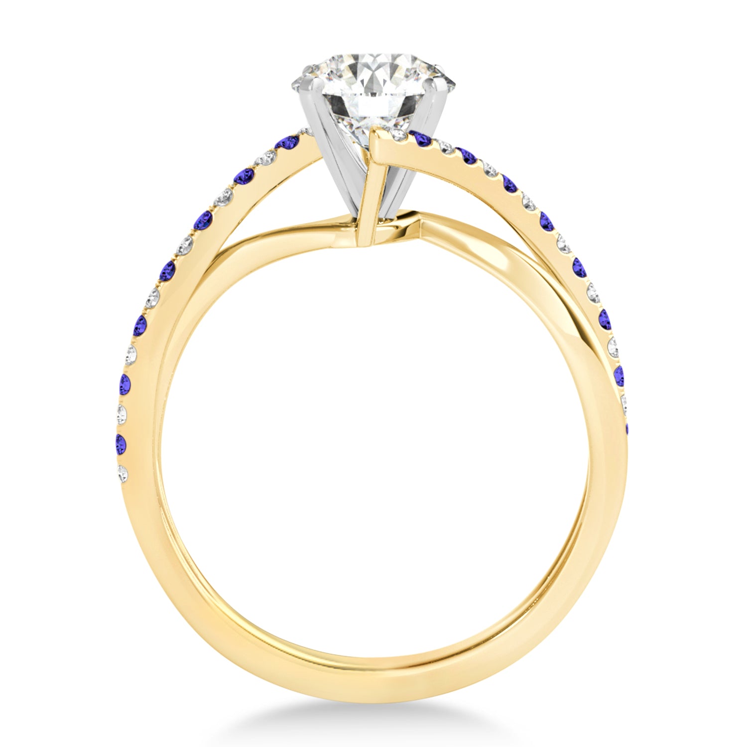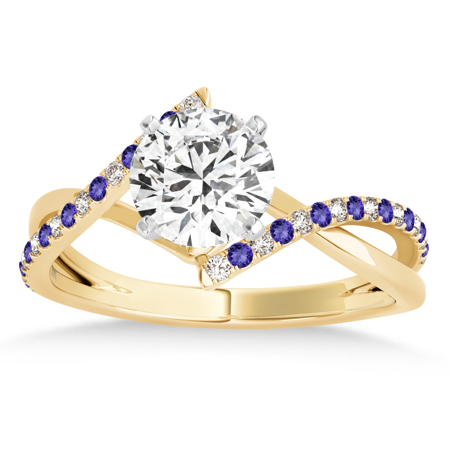 This unique bypass engagement ring setting has a twisted band containing a total of 34 alternating Tanzanites & Diamonds on the ring's shank. The diamonds are of G-H color and SI1-SI2 clarity.
