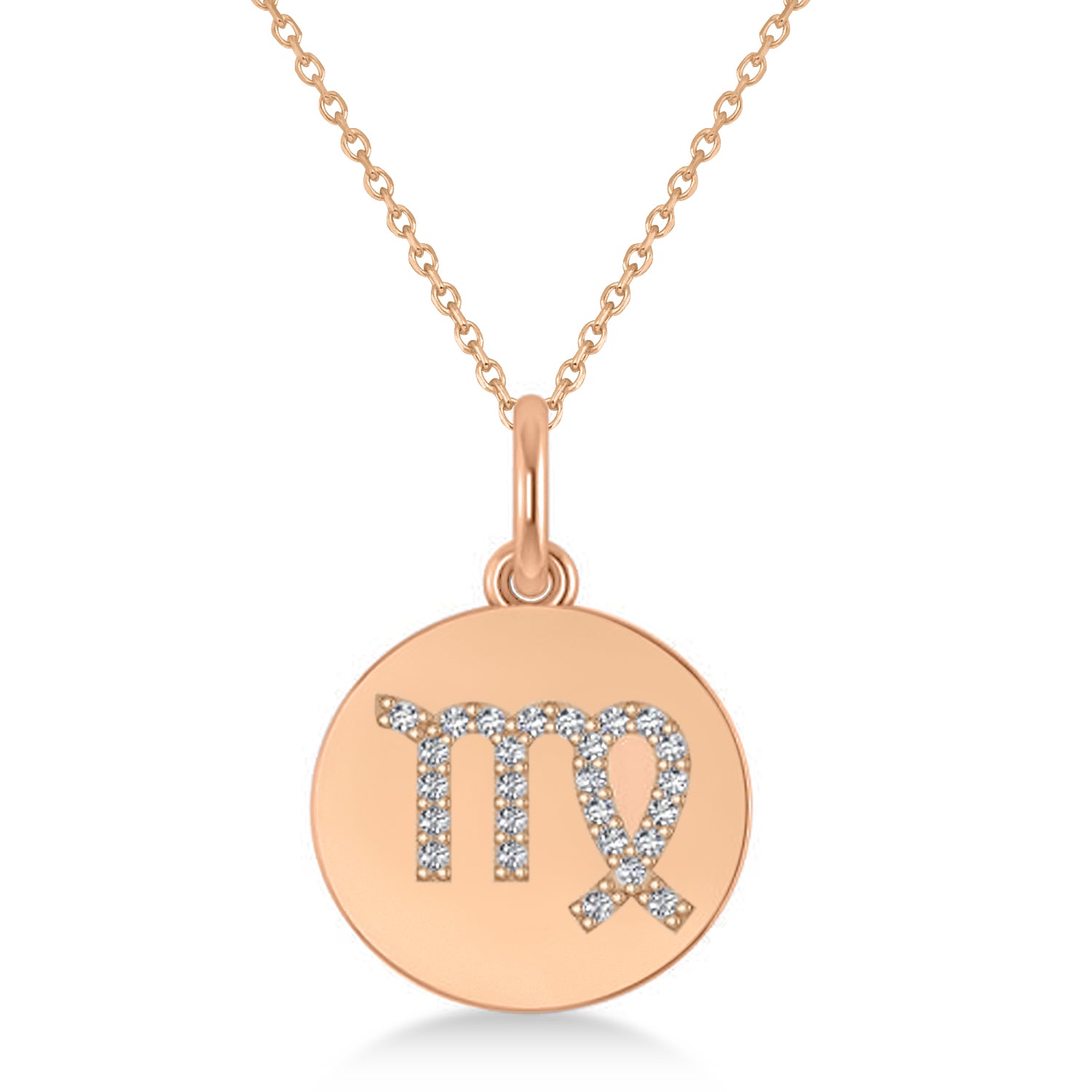 Diamond Virgo Zodiac Disk Pendant Necklace 14k Rose Gold (0.13ct)