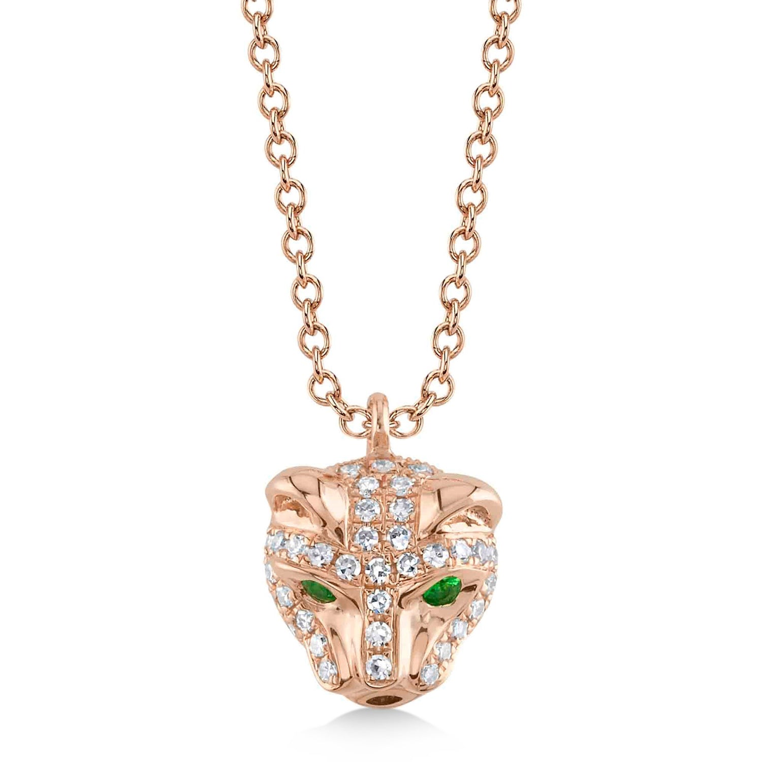 Diamond w/Emerald Panther Pendant Necklace 14K Rose Gold (0.14ct)