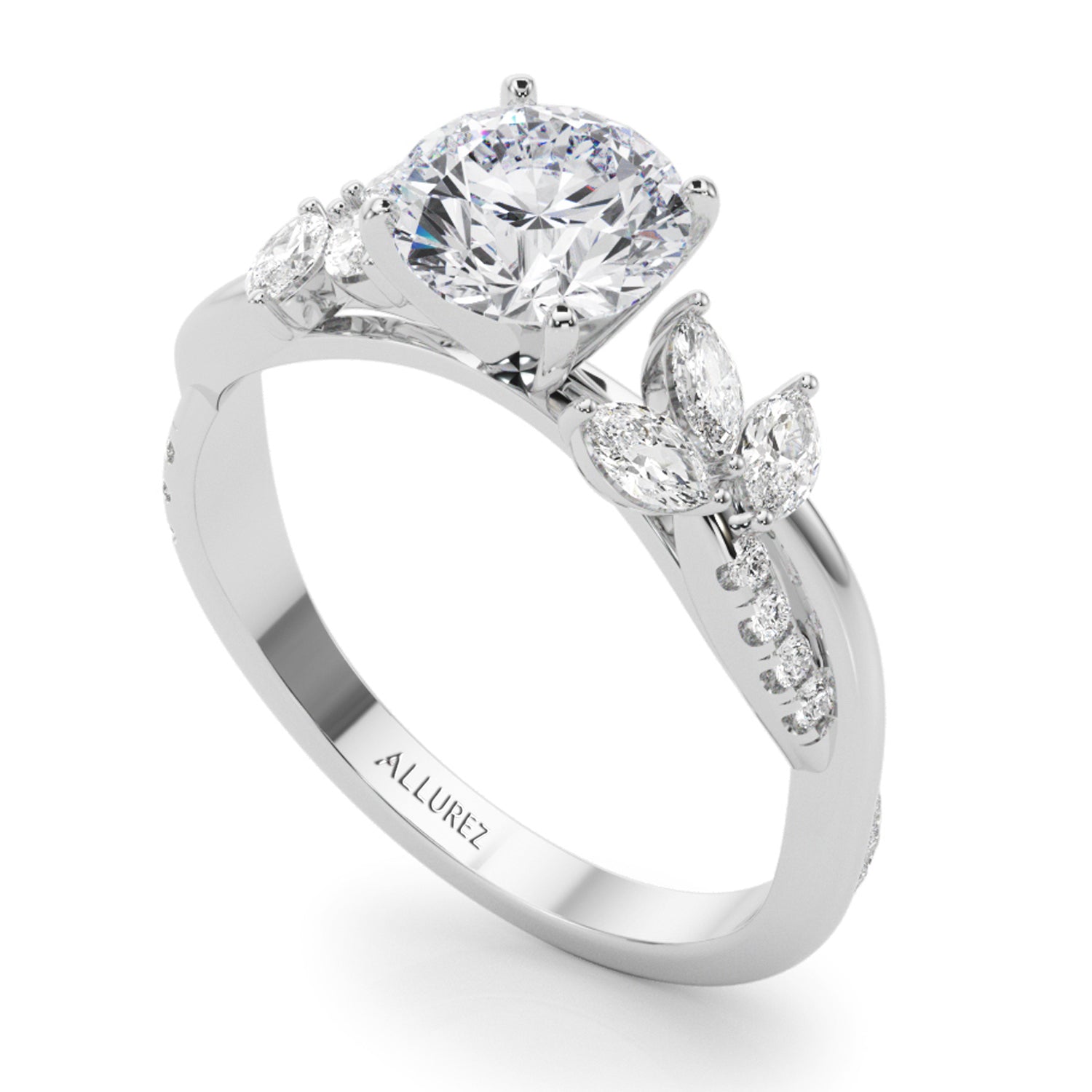 Embrace timeless beauty with our Diamond with Marquise Leaf Engagement Ring in Platinum. Crafted with...