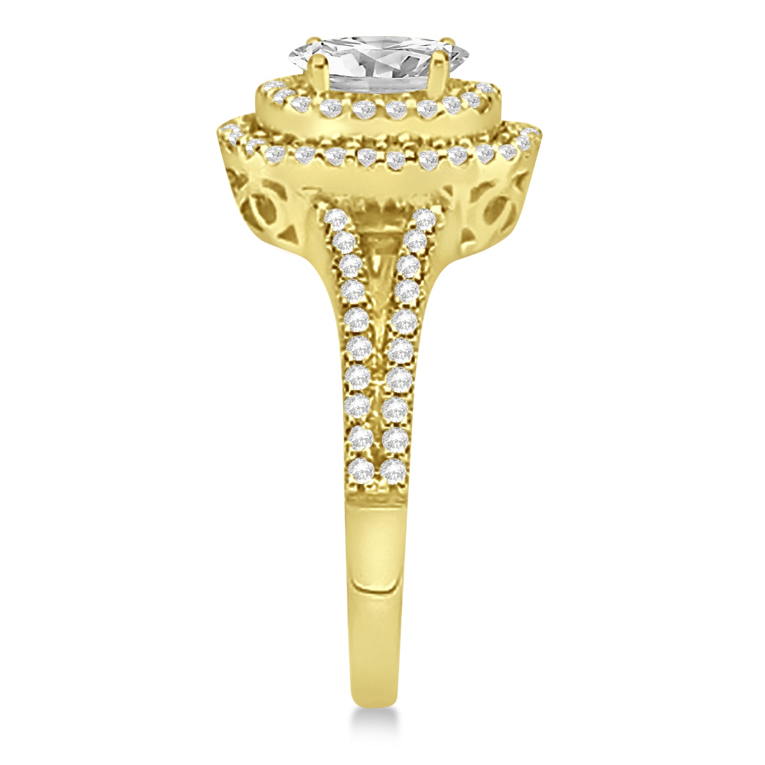 Double Halo Lab Grown Diamond Engagement Ring 14K Yellow Gold 1.34ctw