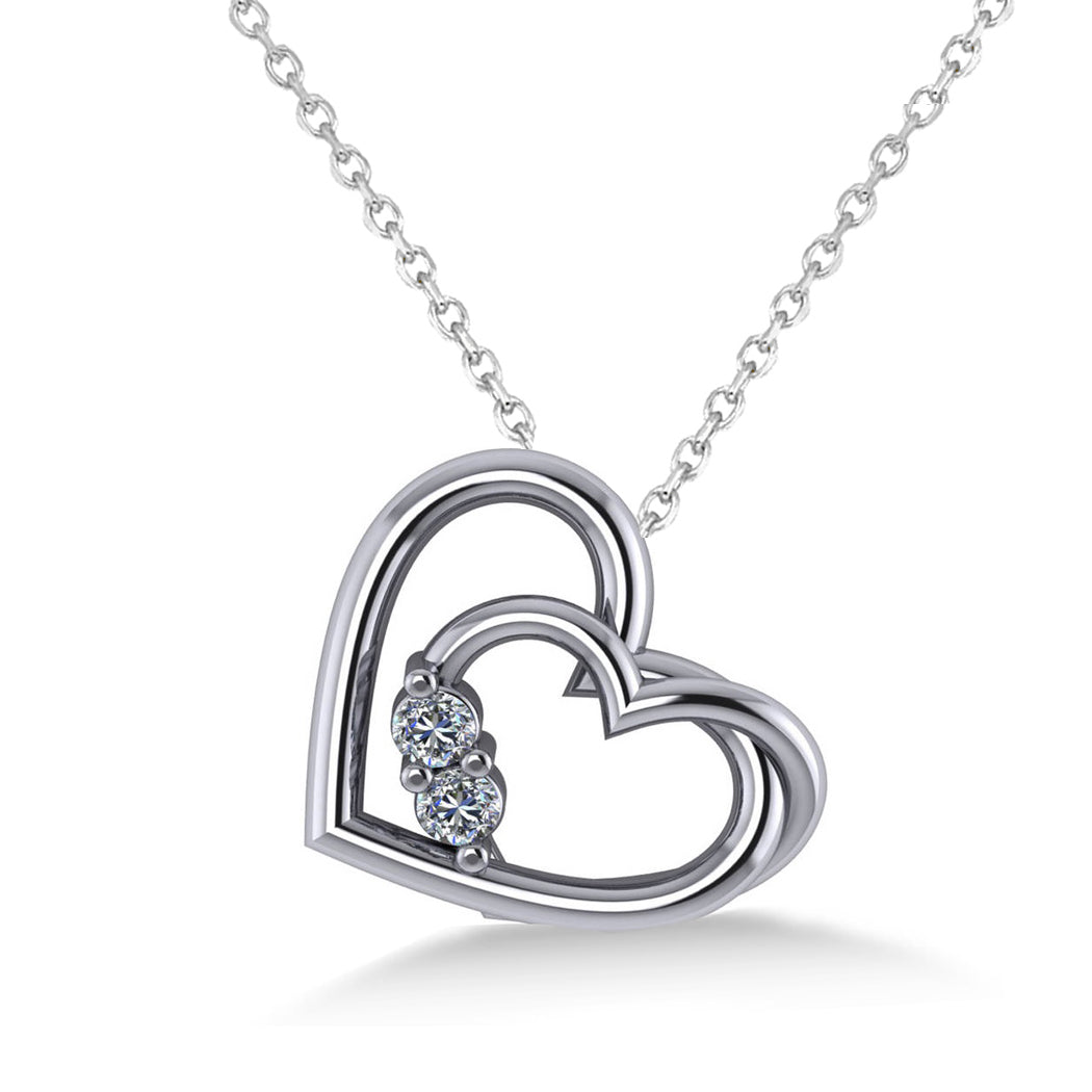 Double Heart Two Stone Diamond Pendant 14k White Gold (0.20ct)