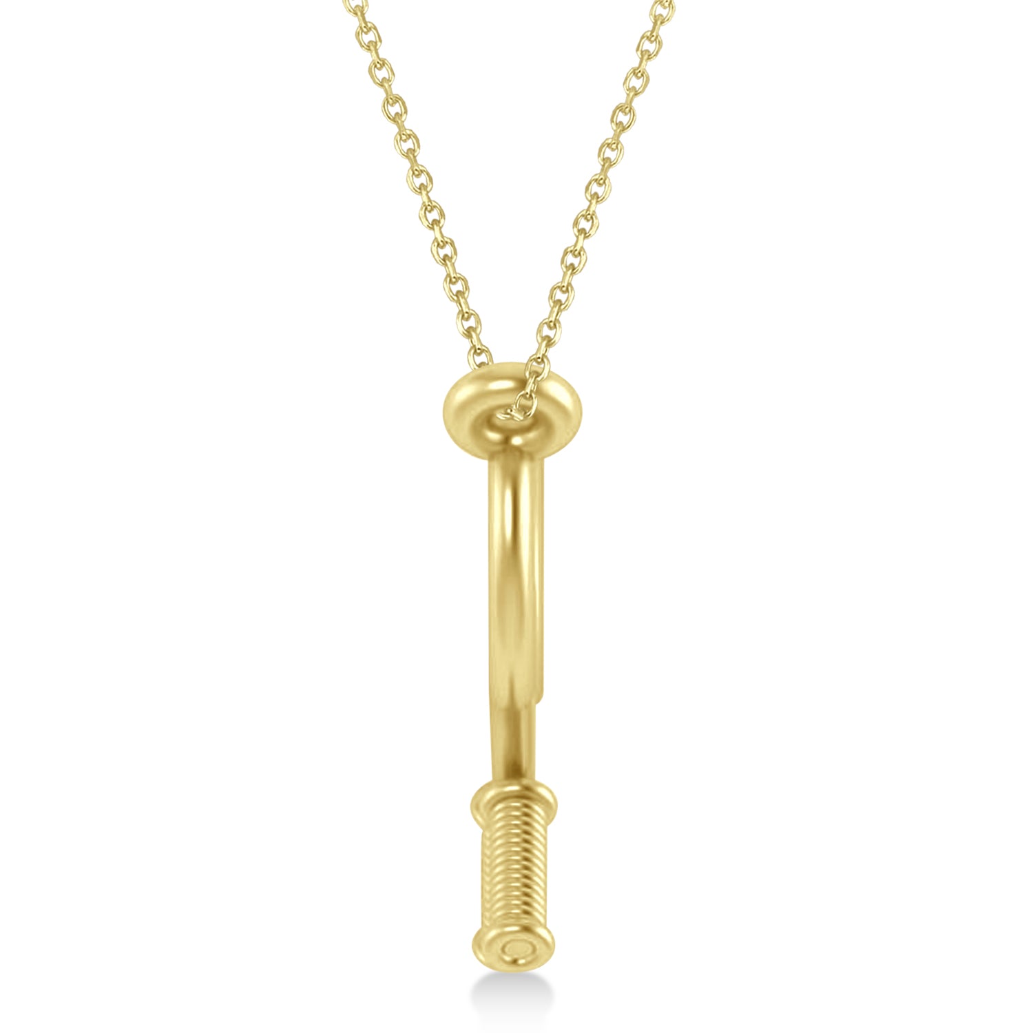 Double Tennis Racket Charm Pendant Necklace 14K Yellow Gold