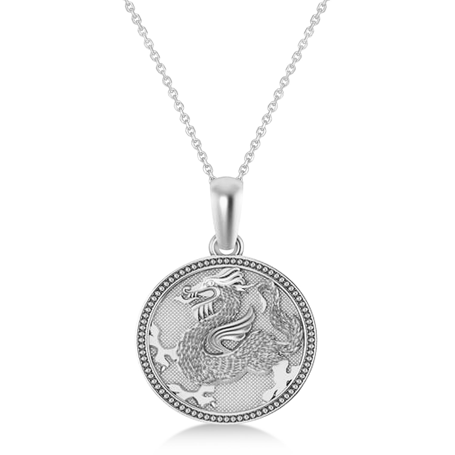 Dragon Zodiac Pendant Necklace 14K White Gold Symbol of Strength and Fortune
