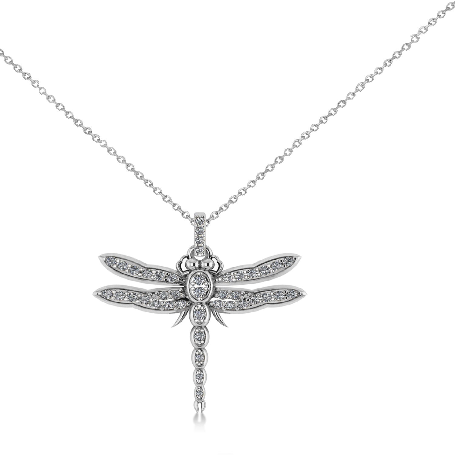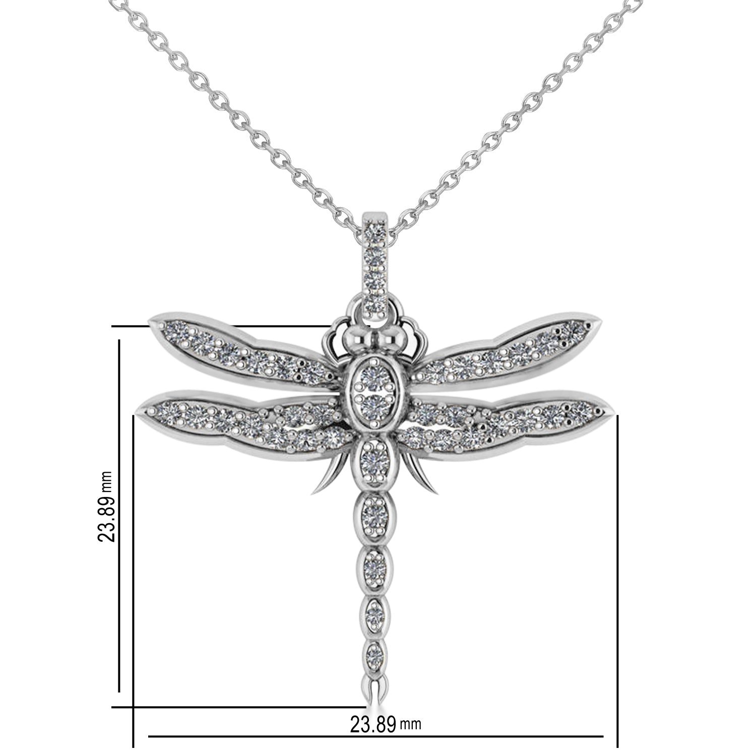 Dragonfly Insect Diamond Pendant Necklace 14k White Gold (0.59ct)