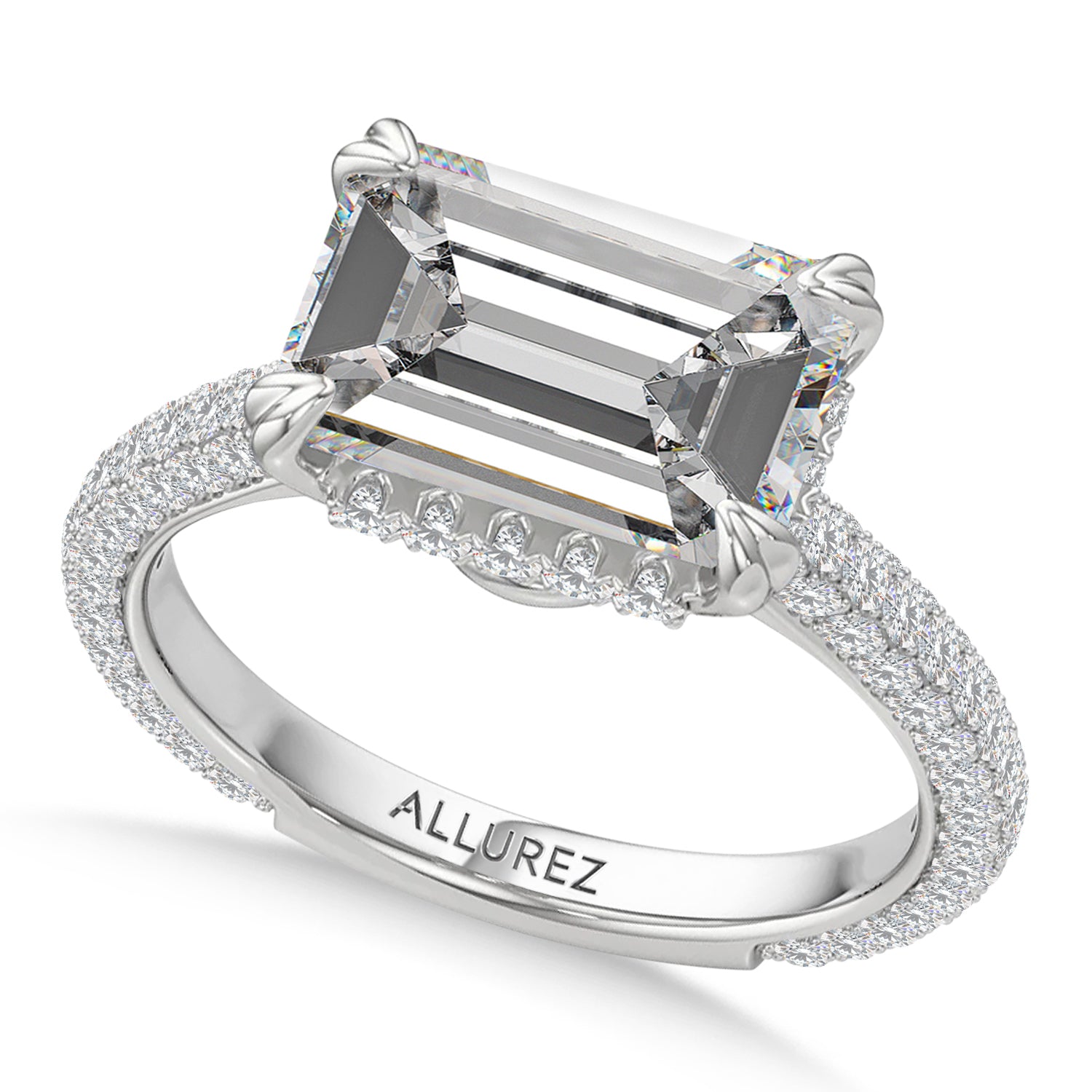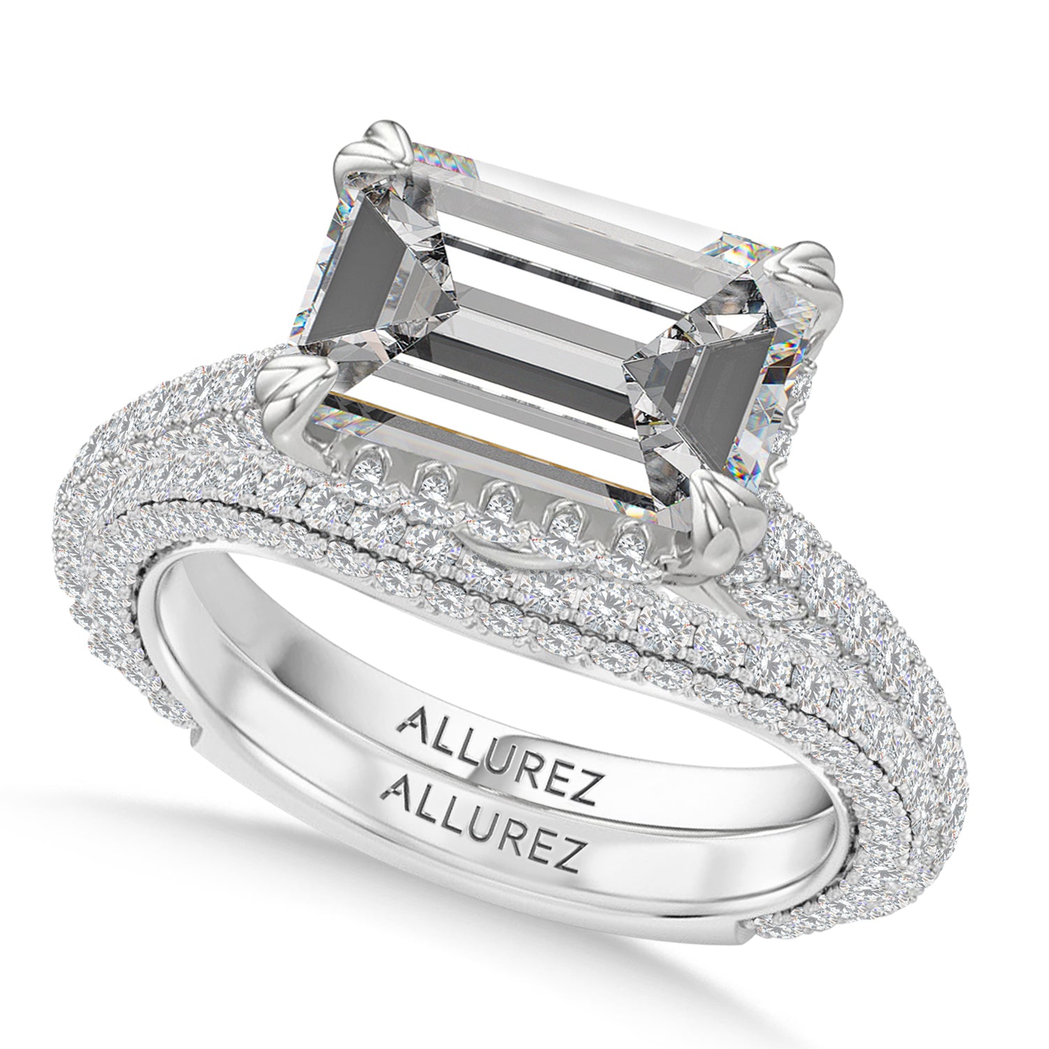 East-West Emerald Lab Diamond Bridal Set 14K White Gold (4.77ct)