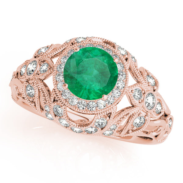 Edwardian Emerald & Diamond Halo Engagement Ring 14k R Gold (1.18ct)