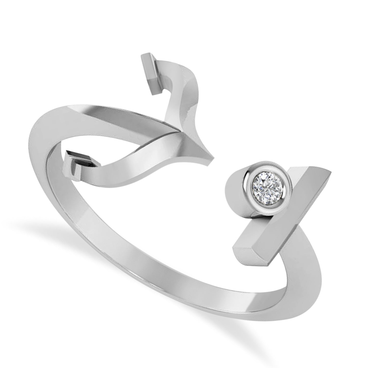 Elegant Nautical Anchor Center Ring Solitaire Diamond 14k White Gold