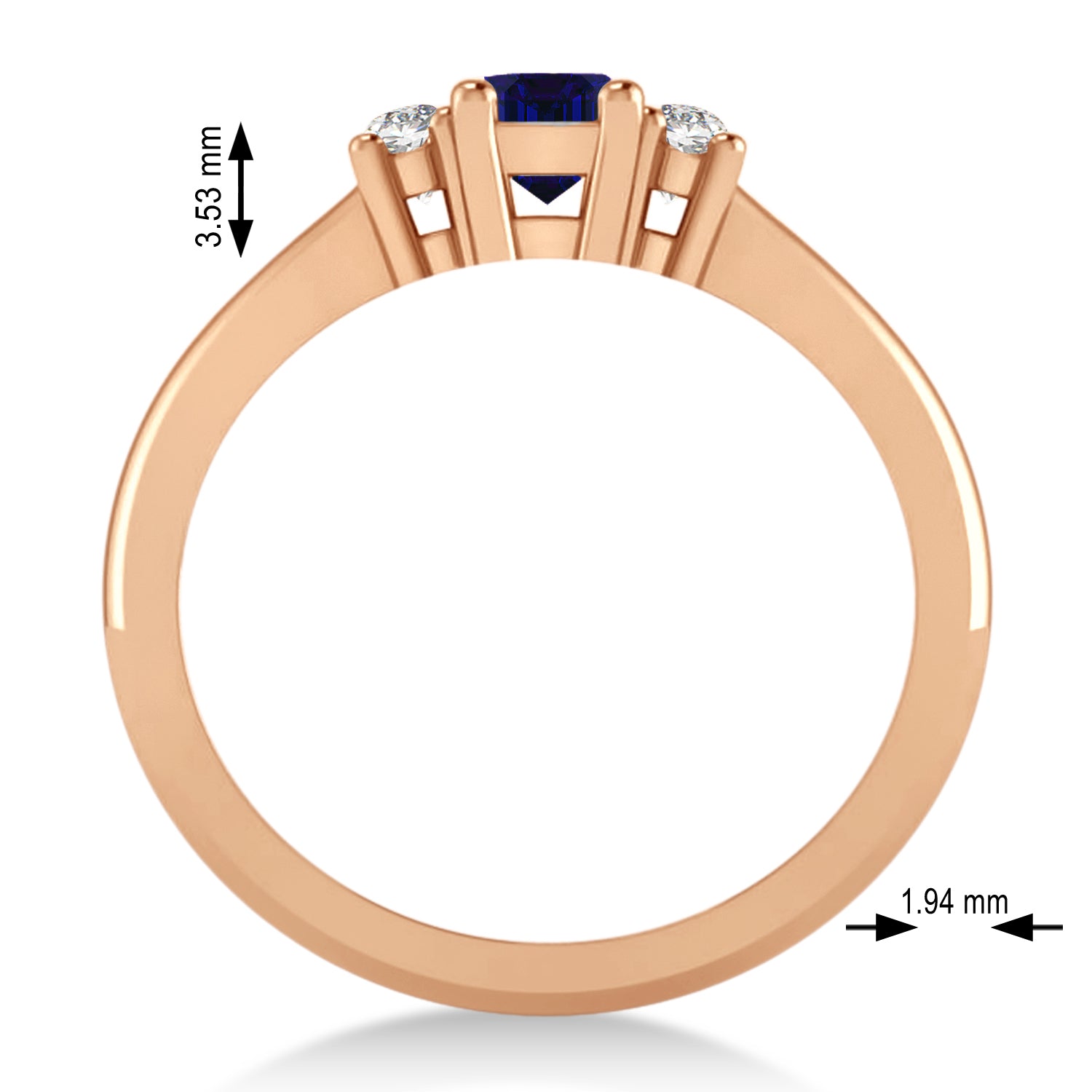 Emerald Blue Sapphire & Diamond Three-Stone Engagement Ring 14k Rose G