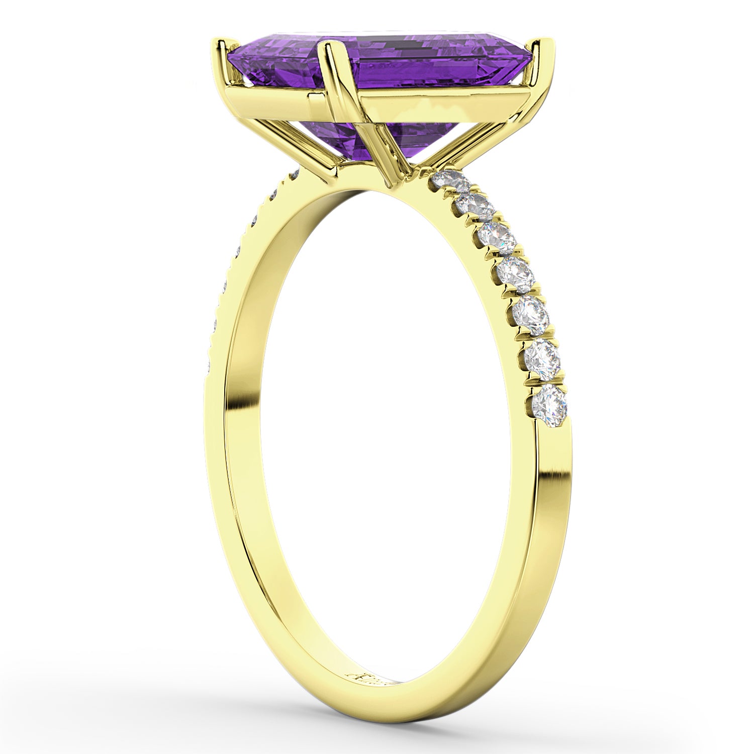This emerald cut amethyst and diamond sidestone accented engagement ring will almost guarantee a "yes" during your proposal.