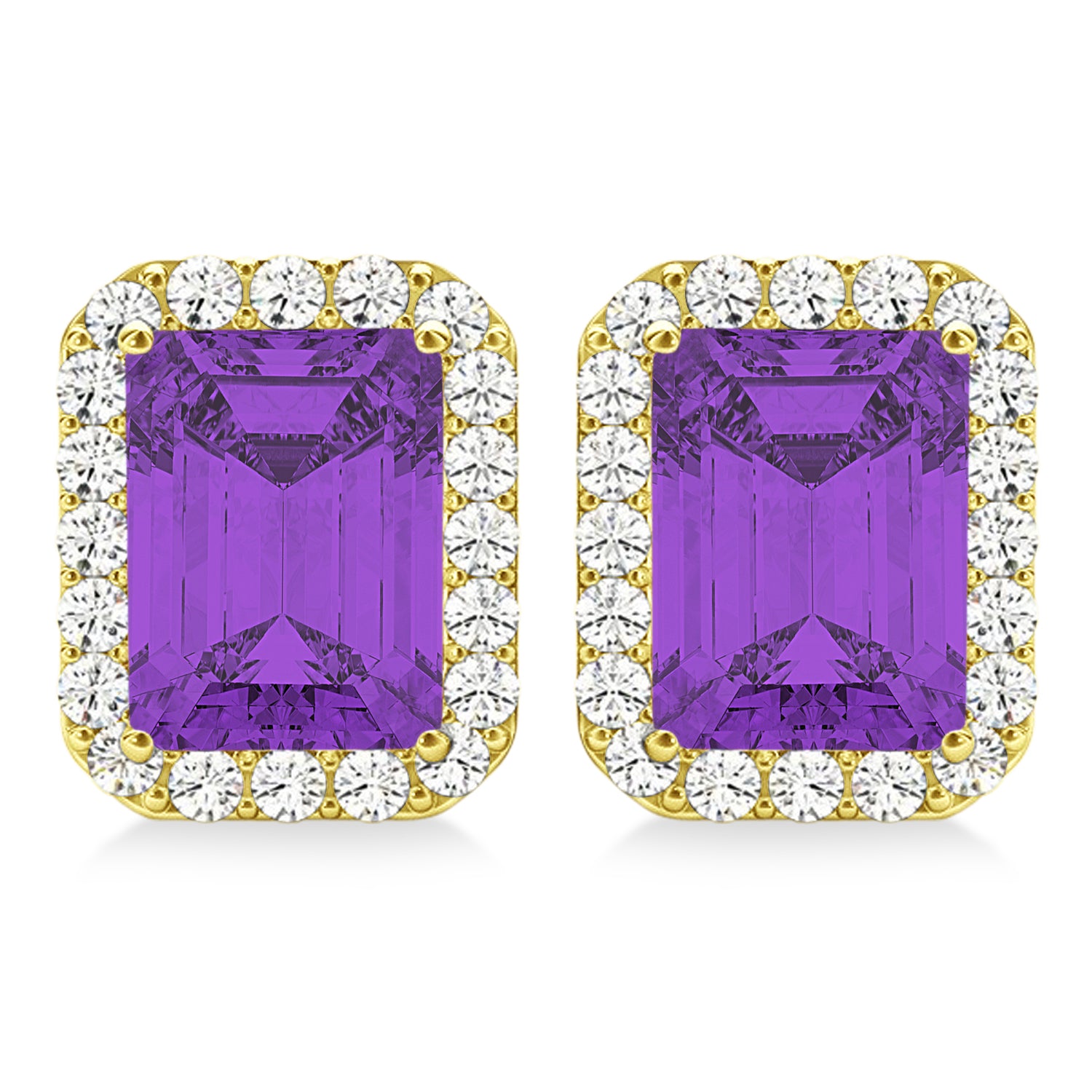 Emerald Cut Amethyst & Diamond Halo Earrings 14k Yellow Gold (2.30ct)