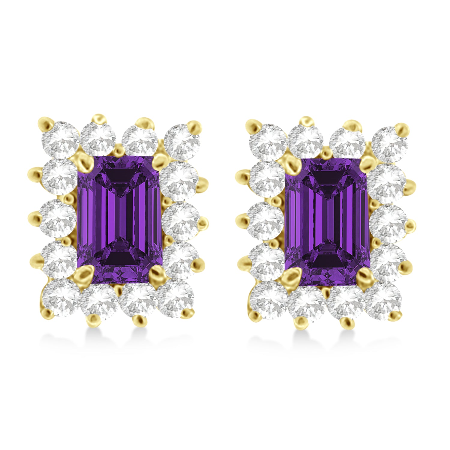 Emerald-Cut Amethyst & Diamond Stud Earrings 14k Yellow Gold (1.80ctw)