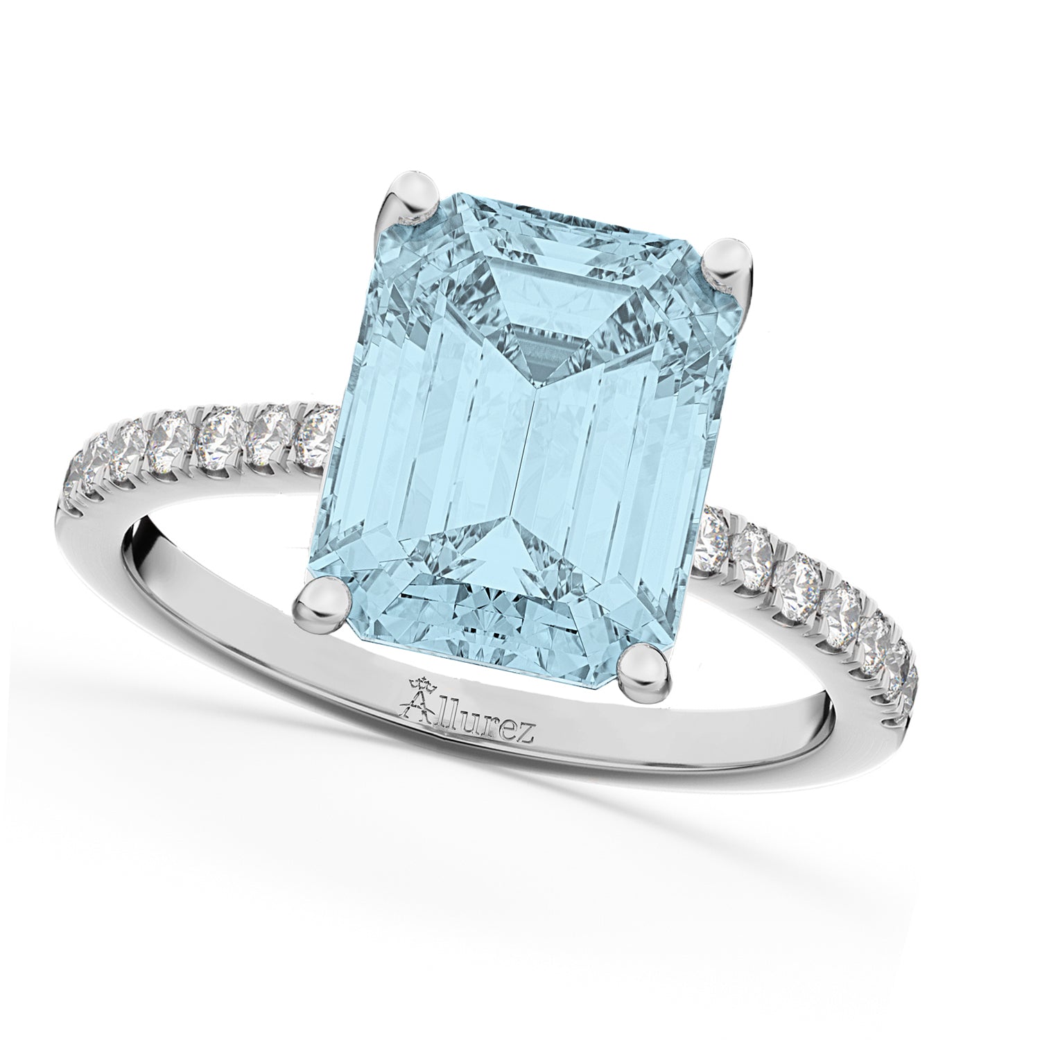 "Wow" your future wife with this emerald cut aquamarine and diamond sidestone accented engagement ring.