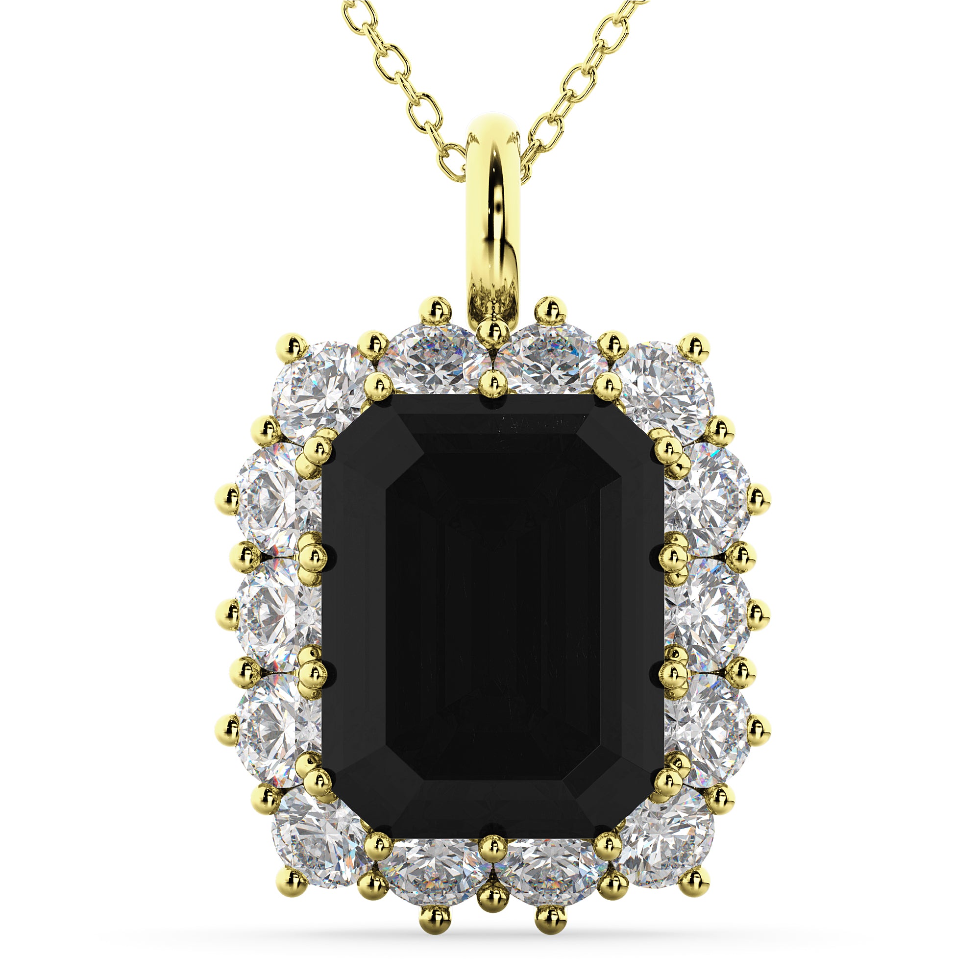 Emerald Cut Black Diamond & Diamond Pendant 14k Yellow Gold (5.68ct)
