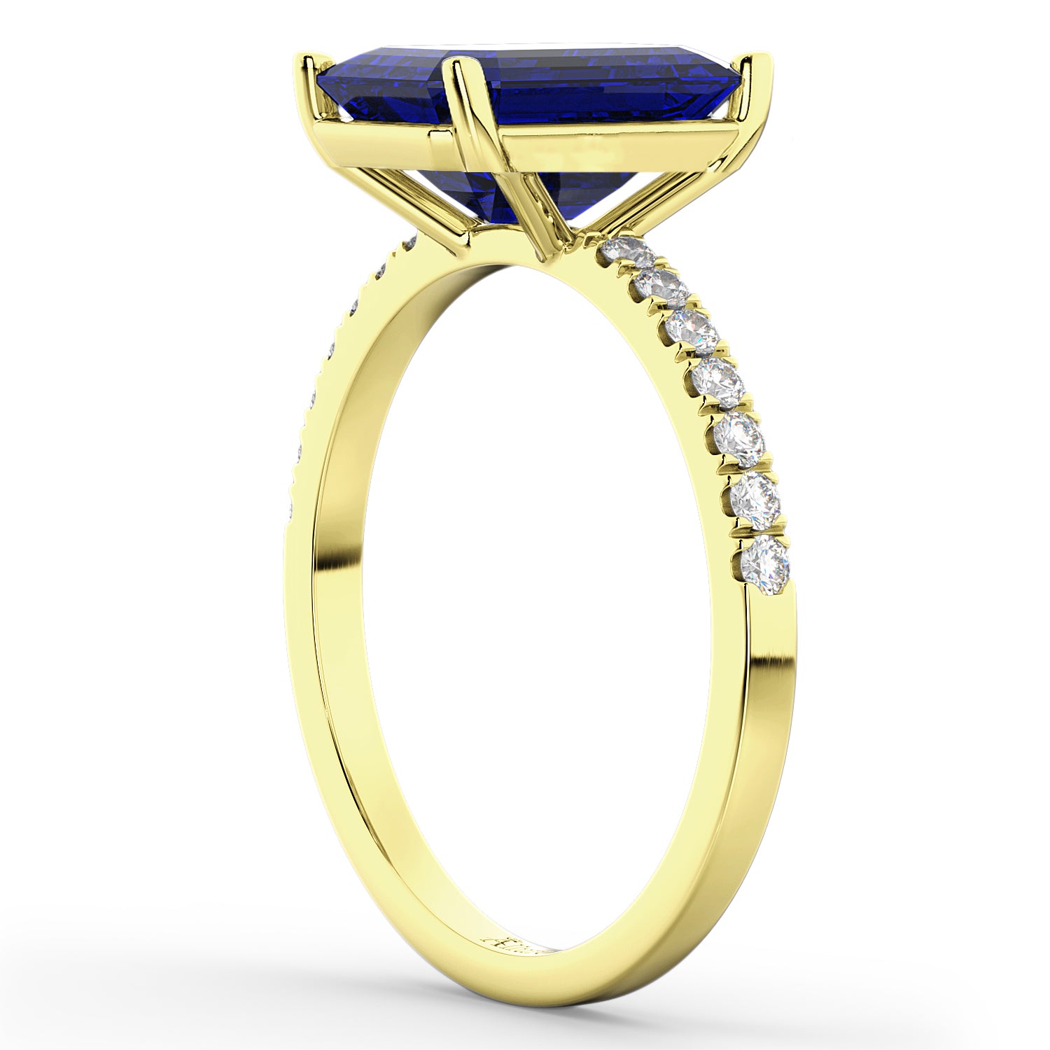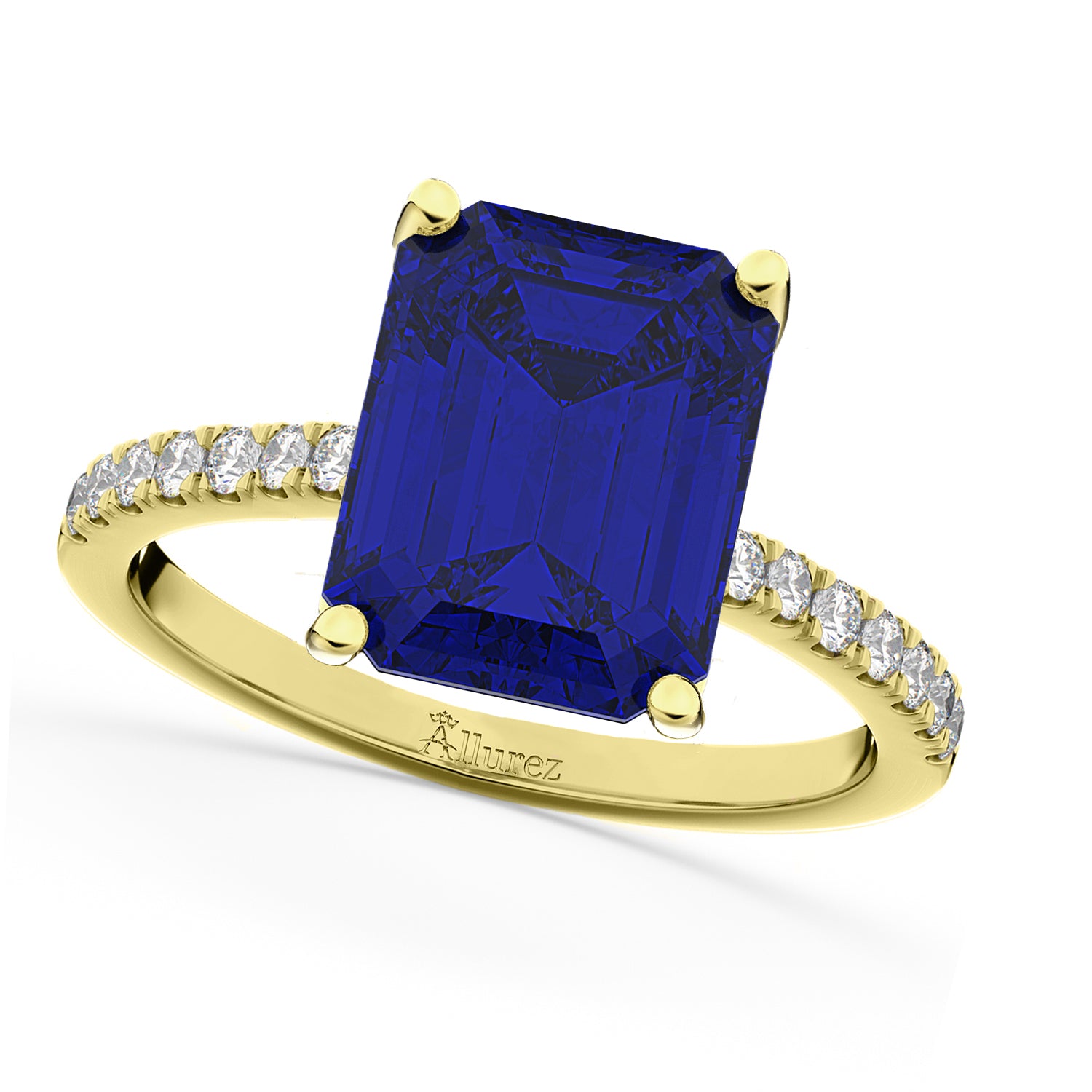 Emerald Cut Blue Sapphire & Diamond Engagement Ring 14k Yellow Gold (2.96ct)