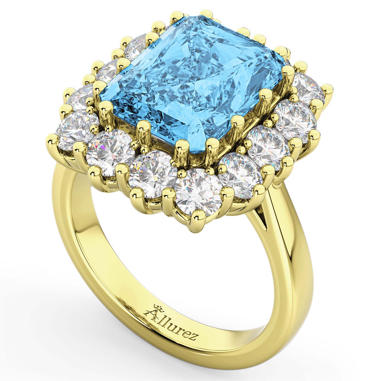 Emerald Cut Blue Topaz & Diamond Lady Di Ring 18k Yellow Gold (5.68ct)