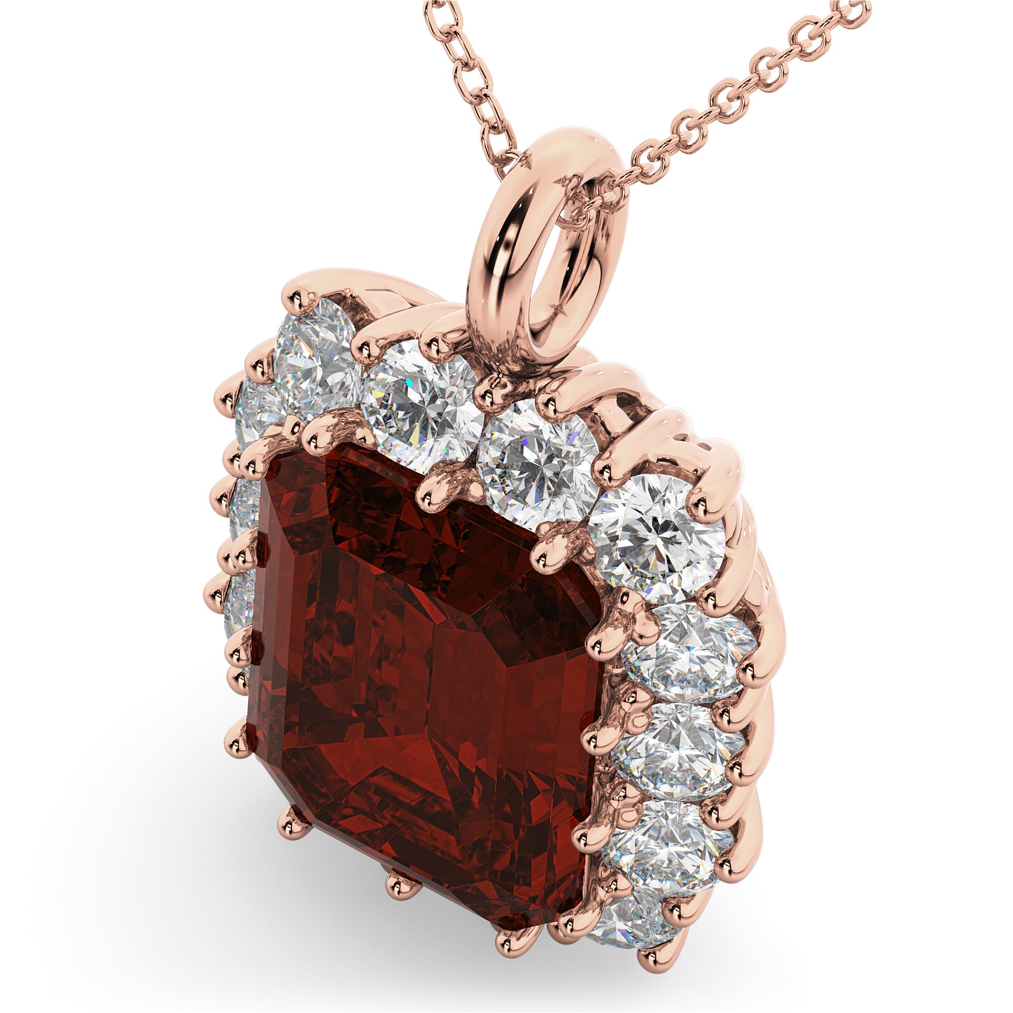 Emerald Cut Garnet & Diamond Pendant 14k Rose Gold (5.68ct)