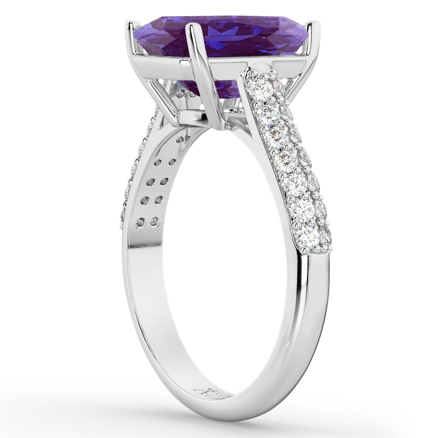 Emerald-Cut Lab Alexandrite & Diamond Engagement Ring 14k White Gold (5.54ct)
