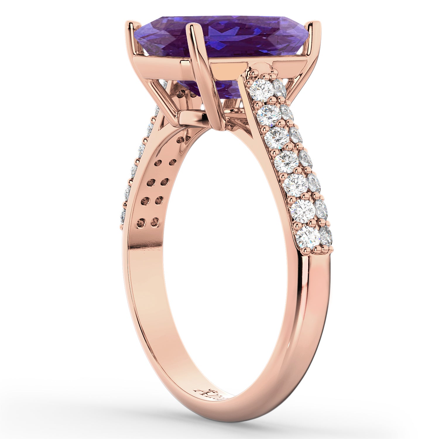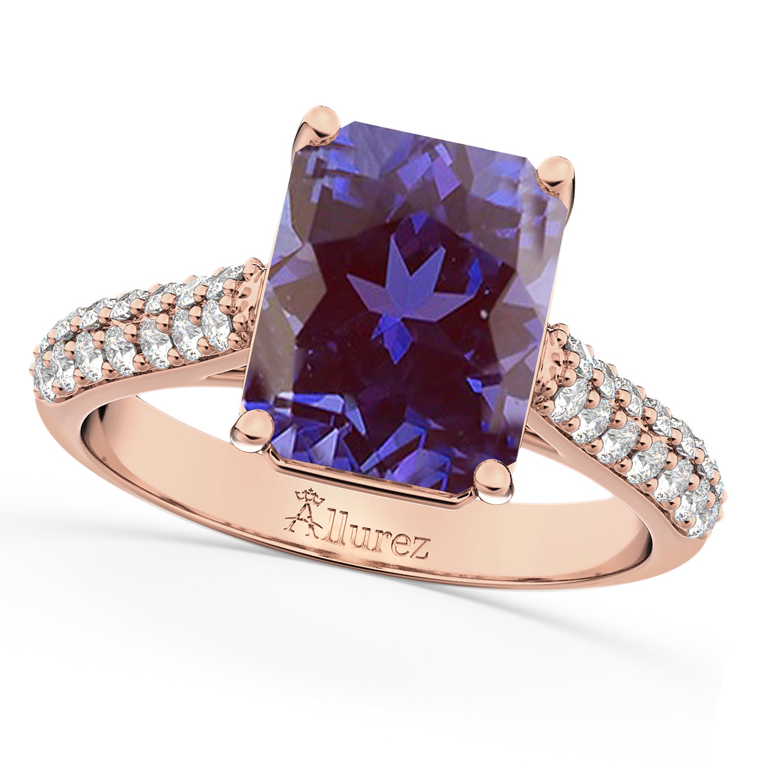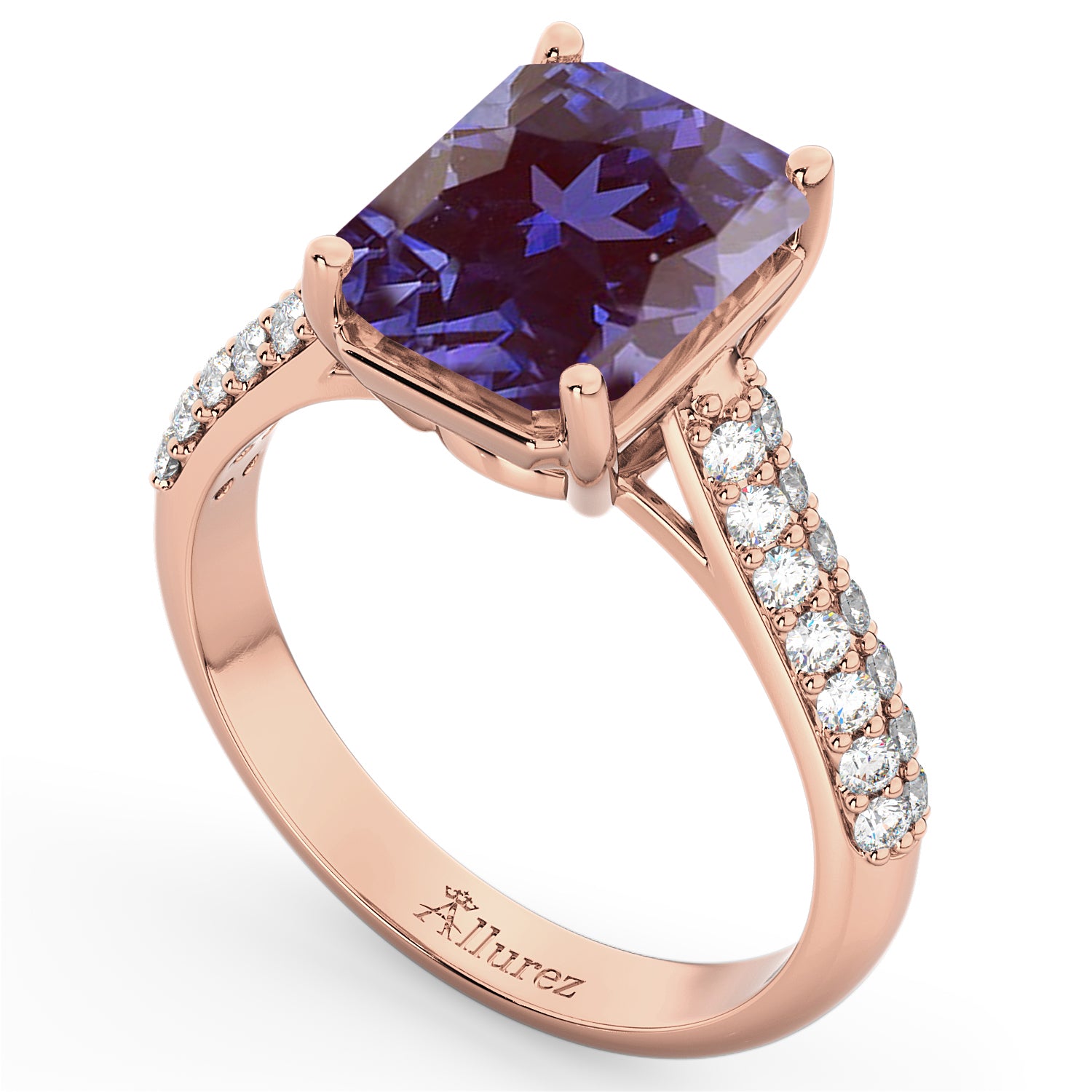 Emerald-Cut Lab Alexandrite & Diamond Engagement Ring 18k Rose Gold (5.54ct)