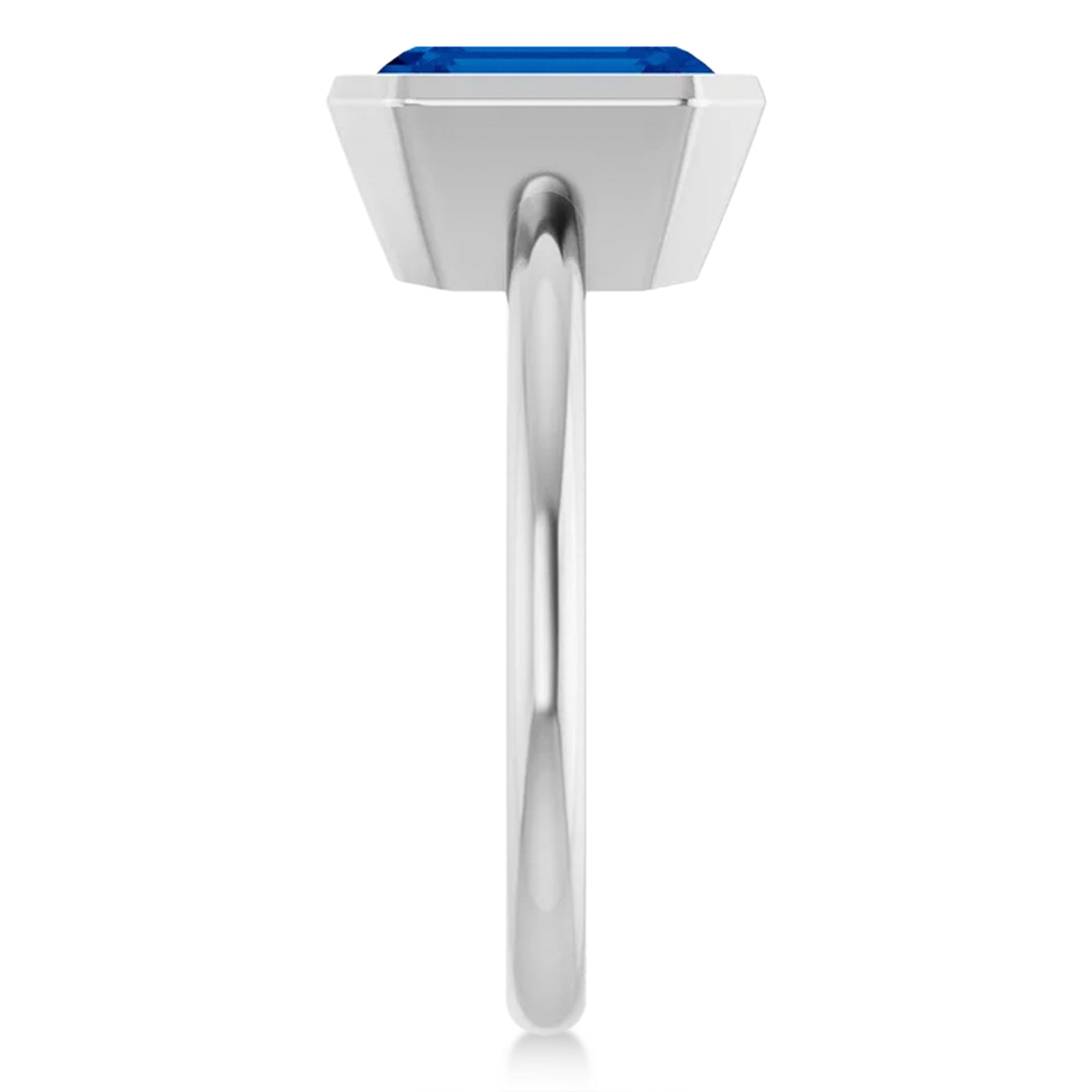 This Emerald Cut Lab Grown Blue Sapphire Fashion Ring is a stunning piece of artistry in 14K white gold, polished to perfection. Its bezel-set 3.00ct lab-grown sapphire takes center stage with an elegant emerald cut, complemented by refined dimensions for a sleek and sophisticated look.