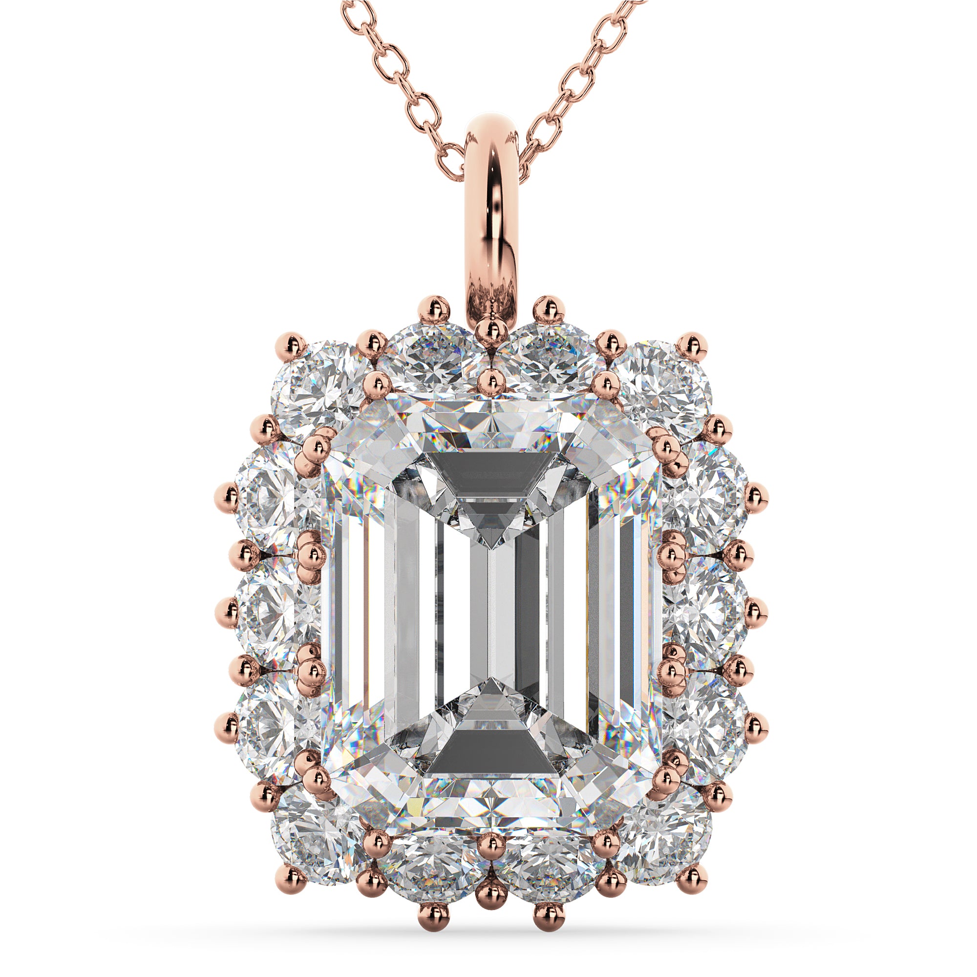 Emerald Cut Moissanite & Diamond Pendant 14k Rose Gold (5.68ct)