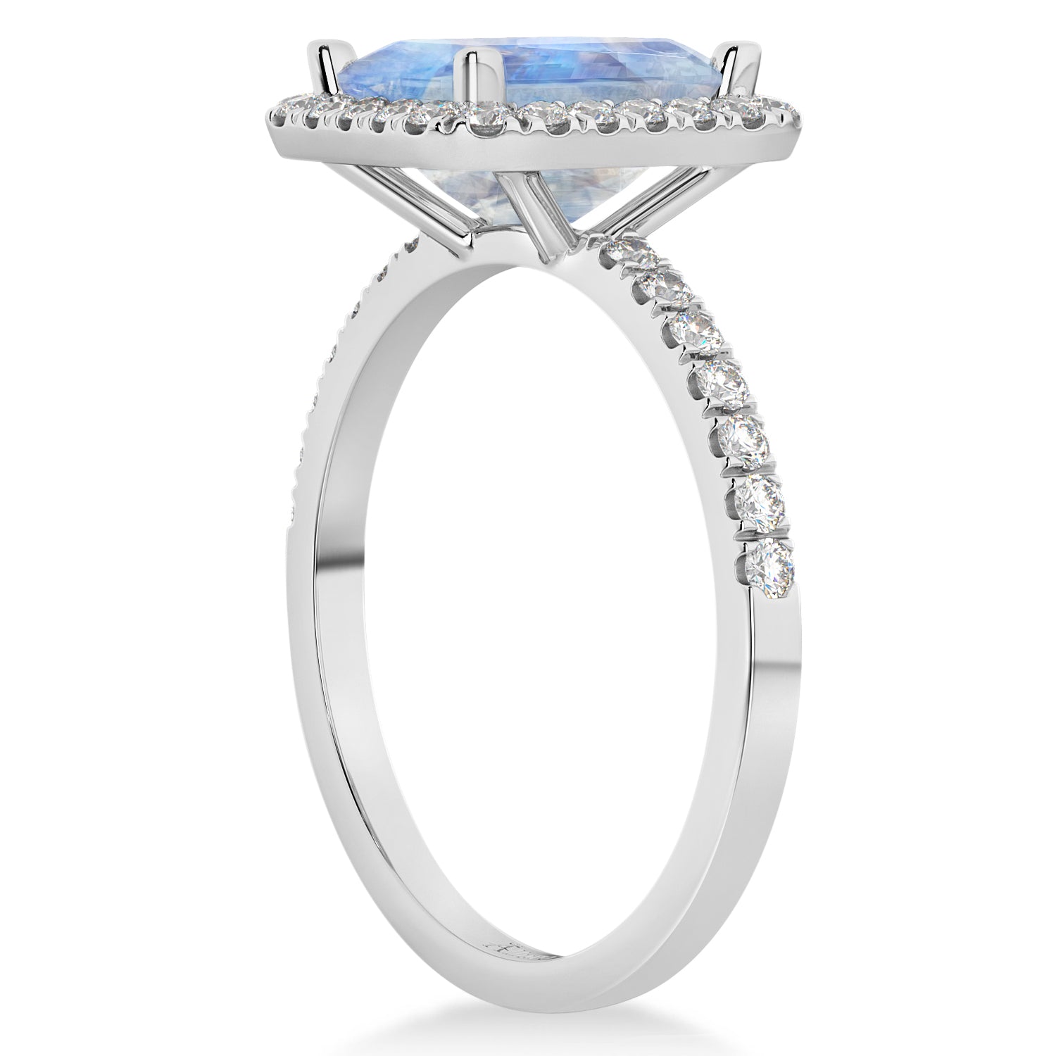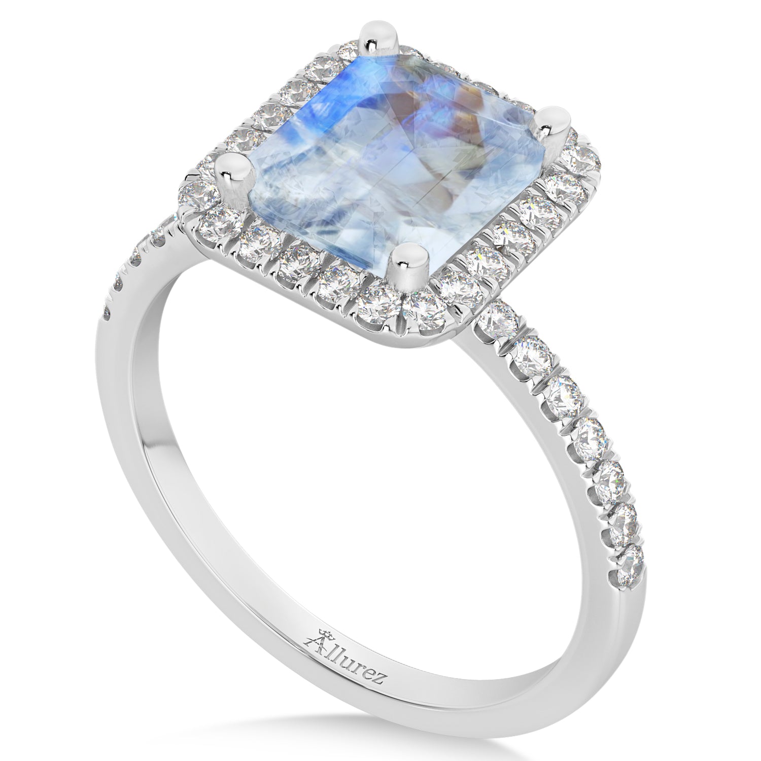 Emerald-Cut Moonstone & Diamond Engagement Ring 14k White Gold (3.32ct)