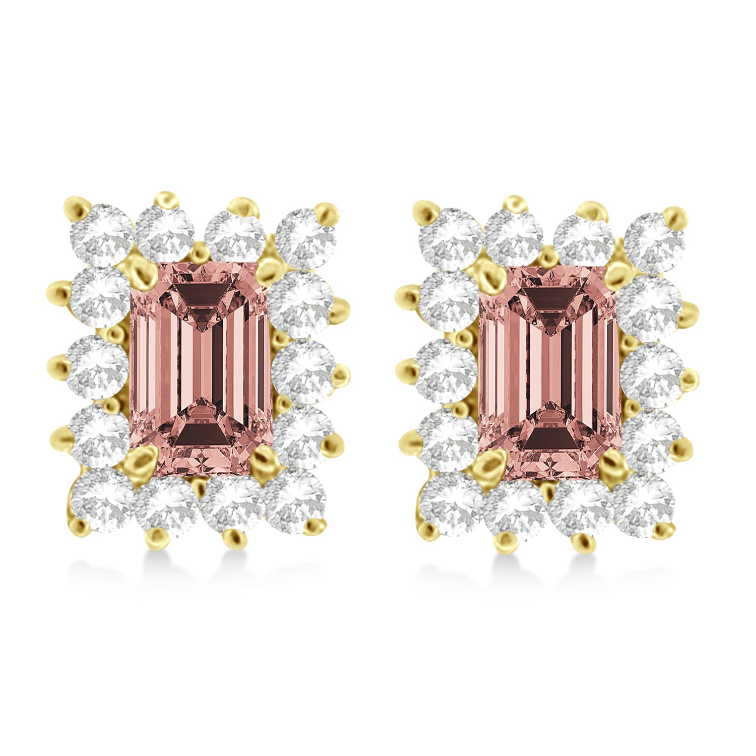 Emerald-Cut Morganite & Diamond Stud Earrings 14k Yellow Gold (1.80ctw