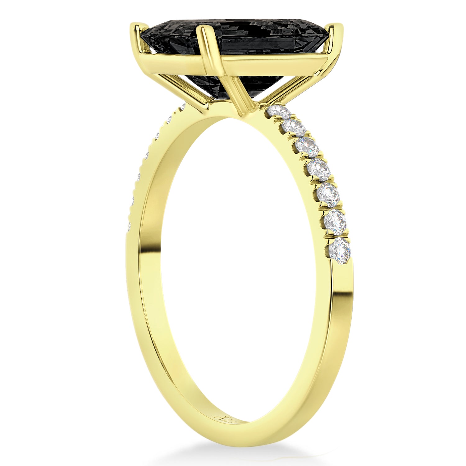 Emerald Cut Onyx & Diamond Engagement Ring 14k Yellow Gold (2.96ct)