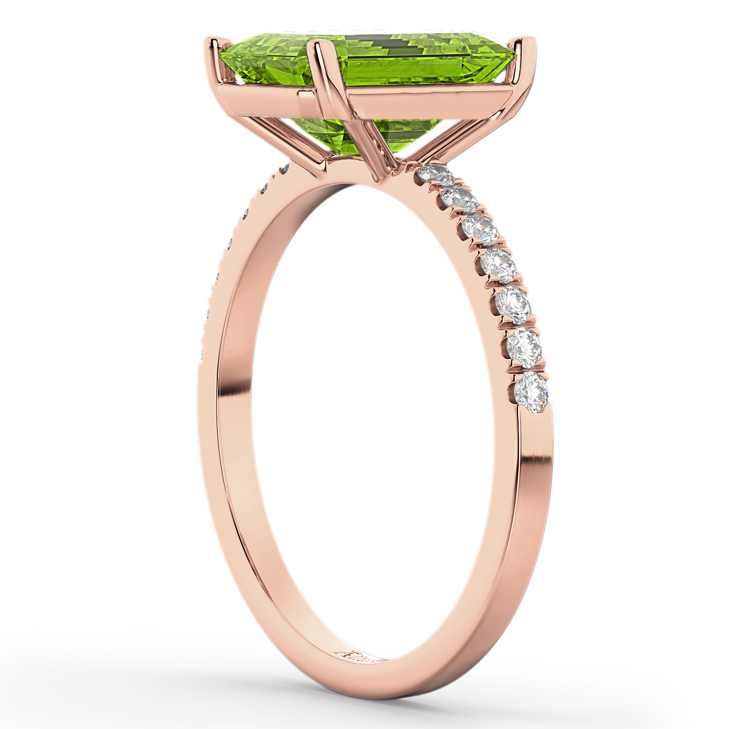 Emerald-Cut Peridot & Diamond Engagement Ring 14k Rose Gold (2.96ct)