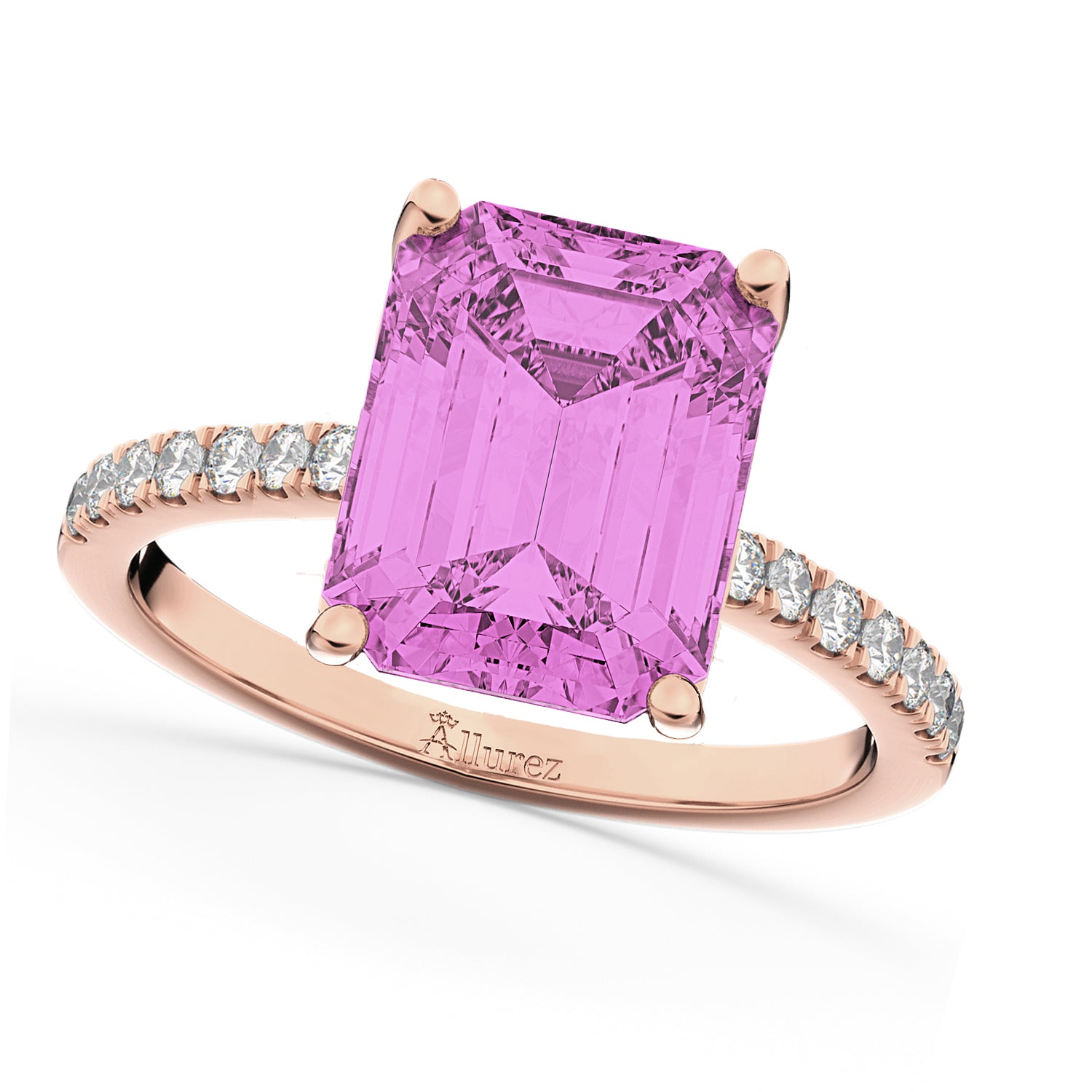 Emerald Cut Pink Sapphire Diamond Engagement Ring 18k Rose Gold (2.96ct)