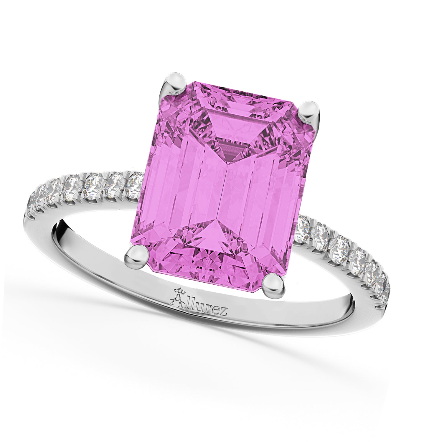 Emerald Cut Pink Sapphire & Diamond Engagement Ring 18k White Gold (2.96ct)