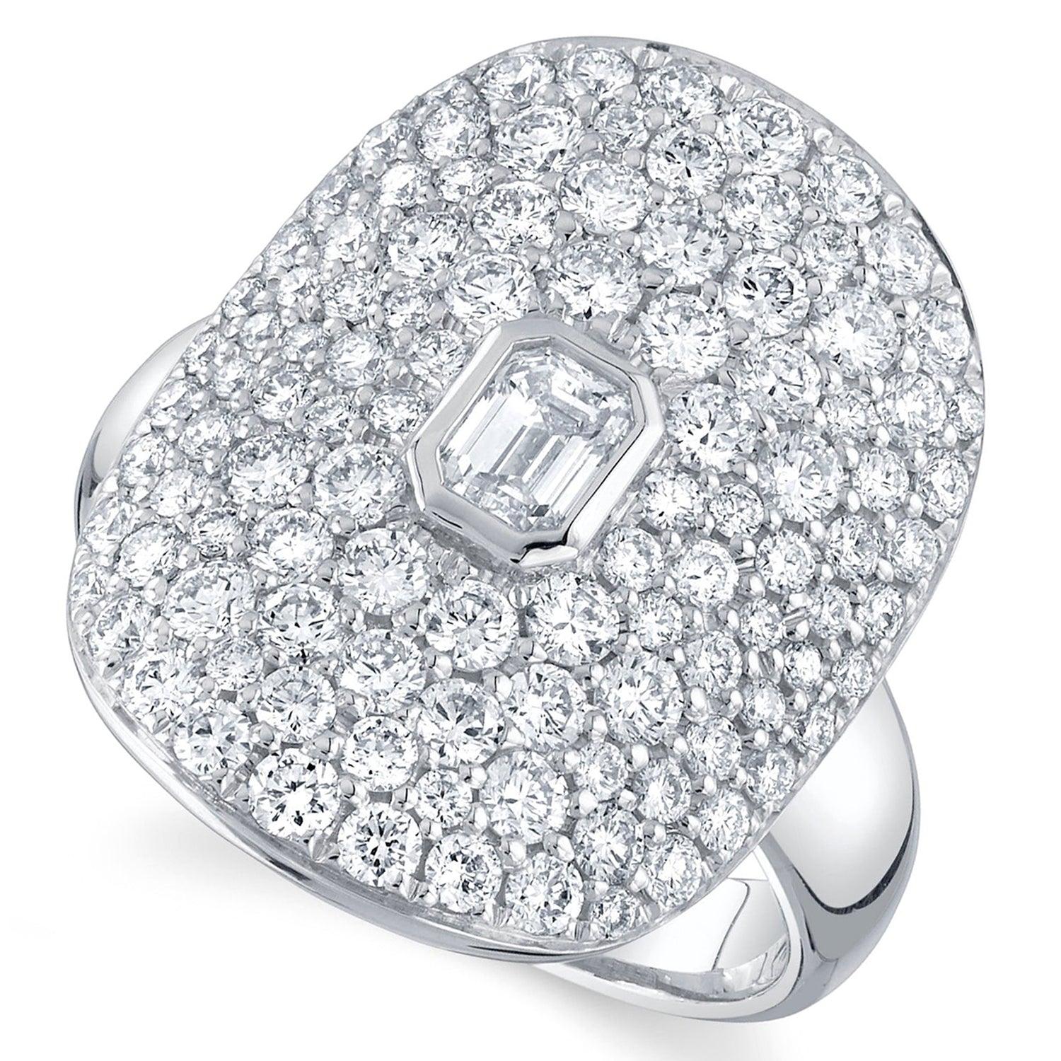 Indulge in the ultimate luxury with our Emerald Diamond Bezel with Accented Halo Cigar Cocktail Ring in 14K White Gold. This exquisite piece features a 2.20ct total diamond weight, showcasing a stunning emerald-cut diamond of SI1-SI2 clarity and G-H color. The bezel setting enhances the diamond?s brilliance, while the accented halo adds an extra layer of sparkle, creating a modern yet timeless look. Crafted from high-quality 14K white gold, this cocktail ring offers a sophisticated and elegant appeal. The comfort fit design ensures a smooth and comfortable wear, making it perfect for daily use or special occasions.