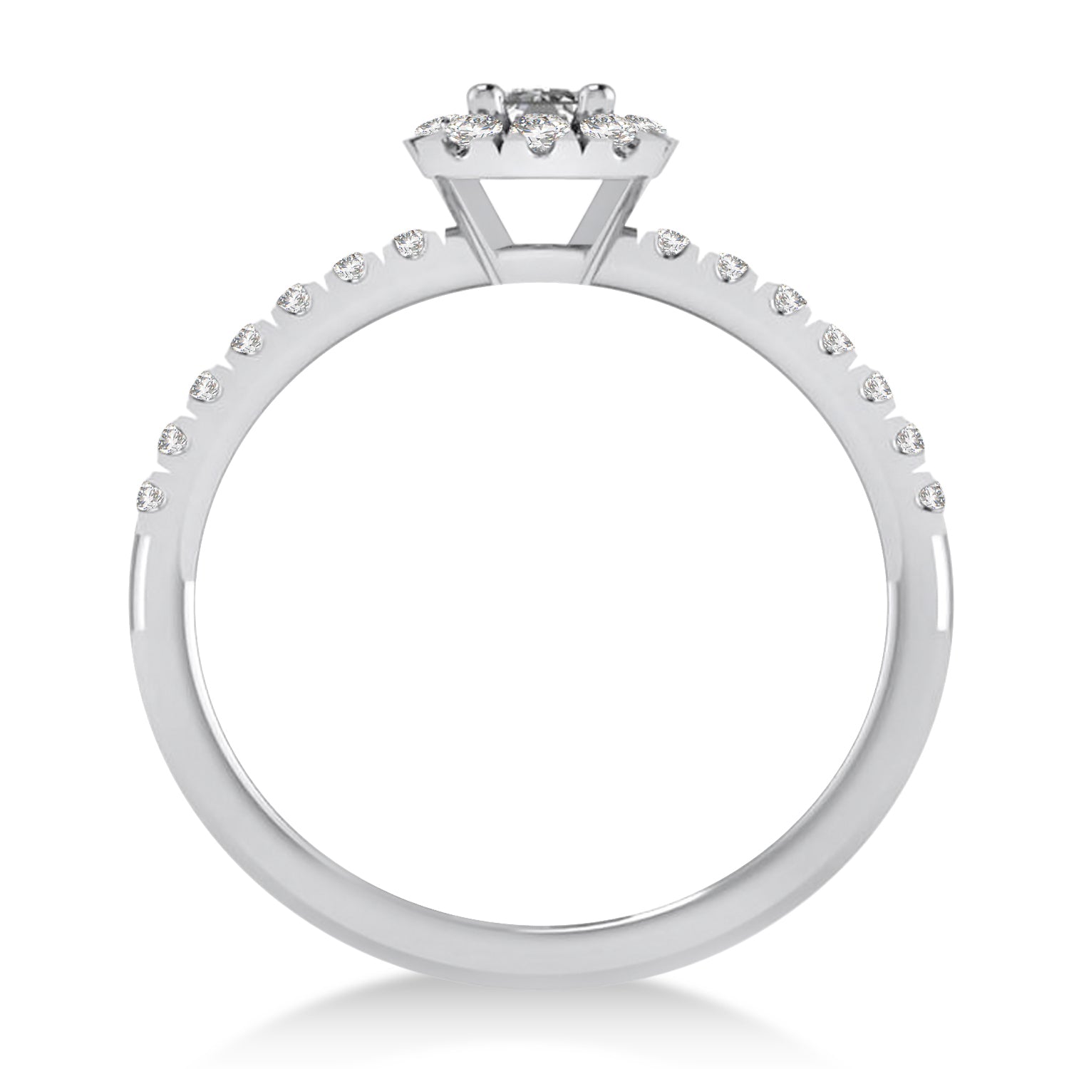 Emerald Diamond Halo Engagement Ring 14k White Gold (0.68ct)