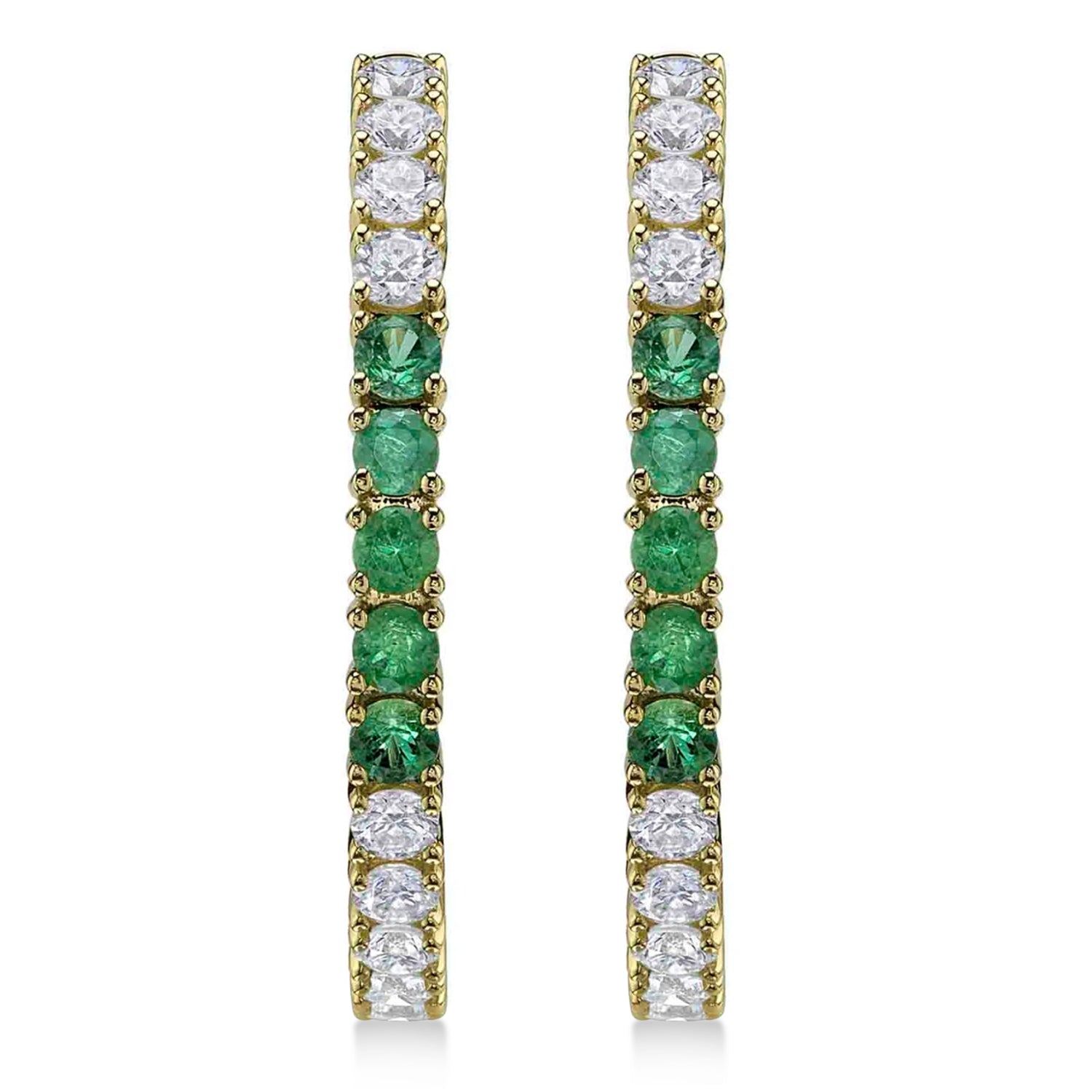 Emerald & Diamond Hoop Earrings 14K Yellow Gold (1.41ct)