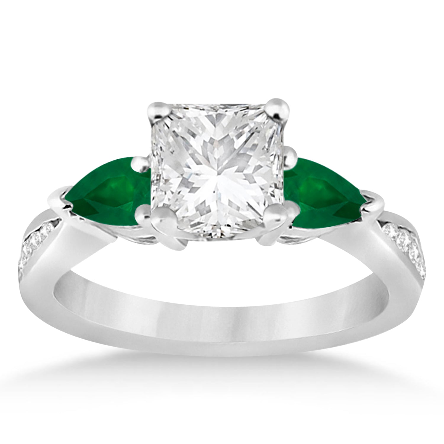 Emerald Diamond & Pear Green Emerald Engagement Ring in Platinum (1.29