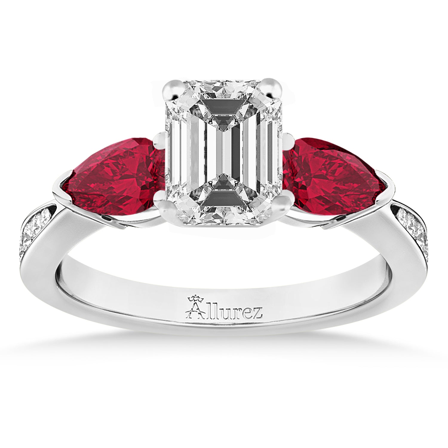 Emerald Diamond & Pear Ruby Gemstone Engagement Ring 14k White Gold (1
