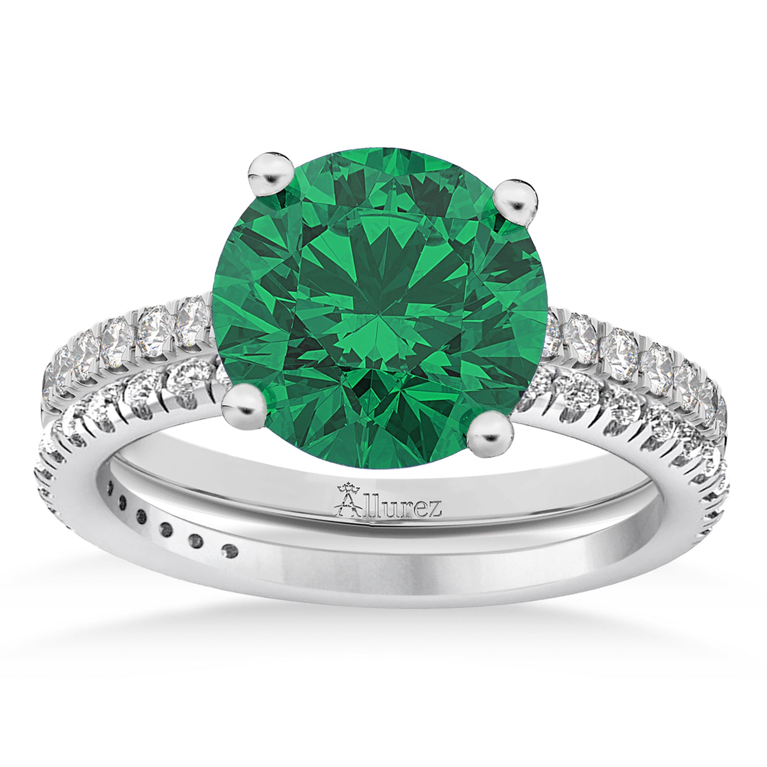 Emerald & Diamond Round-Set Semi-Eternity Bridal Set 18k White Gold (2.92ct)