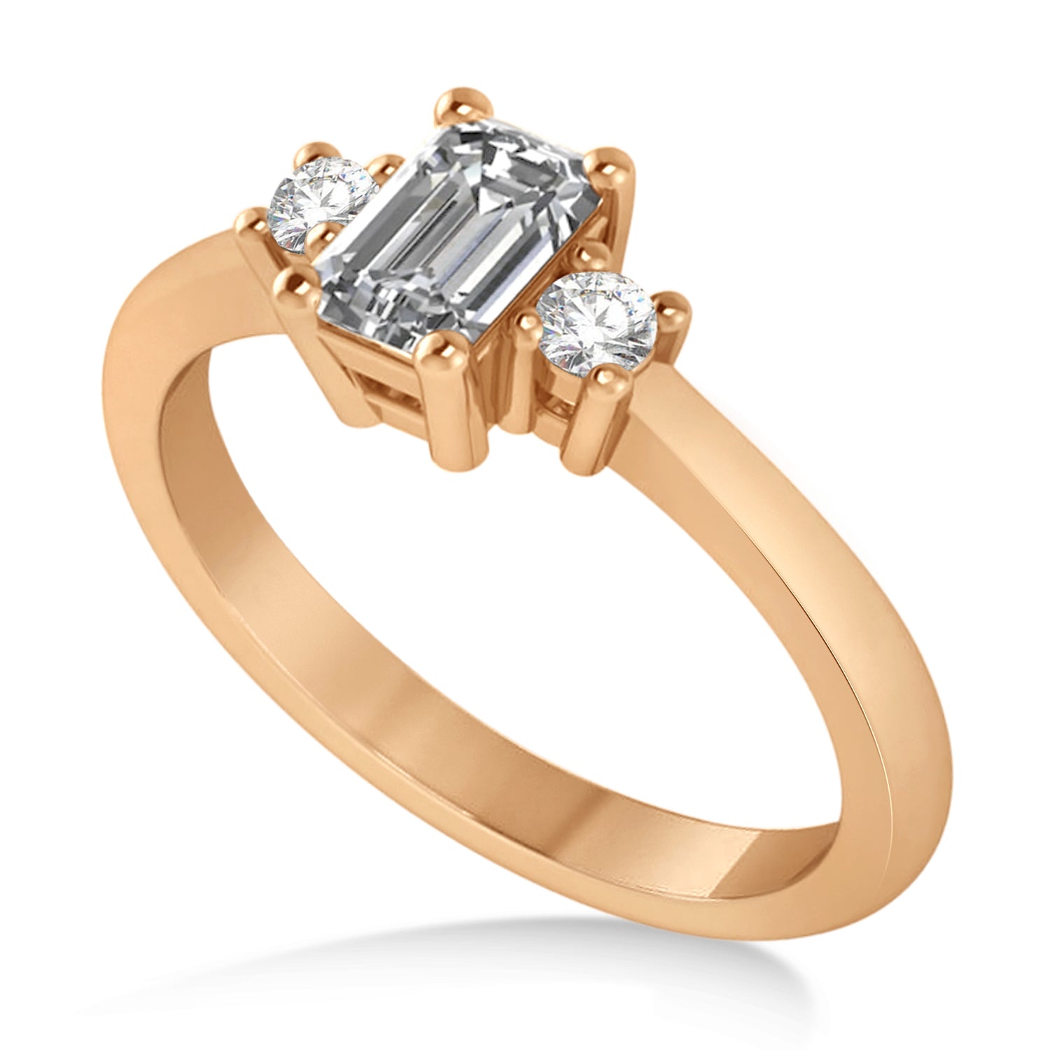 Emerald Diamond Three-Stone Engagement Ring 14k Rose Gold (0.60ct)