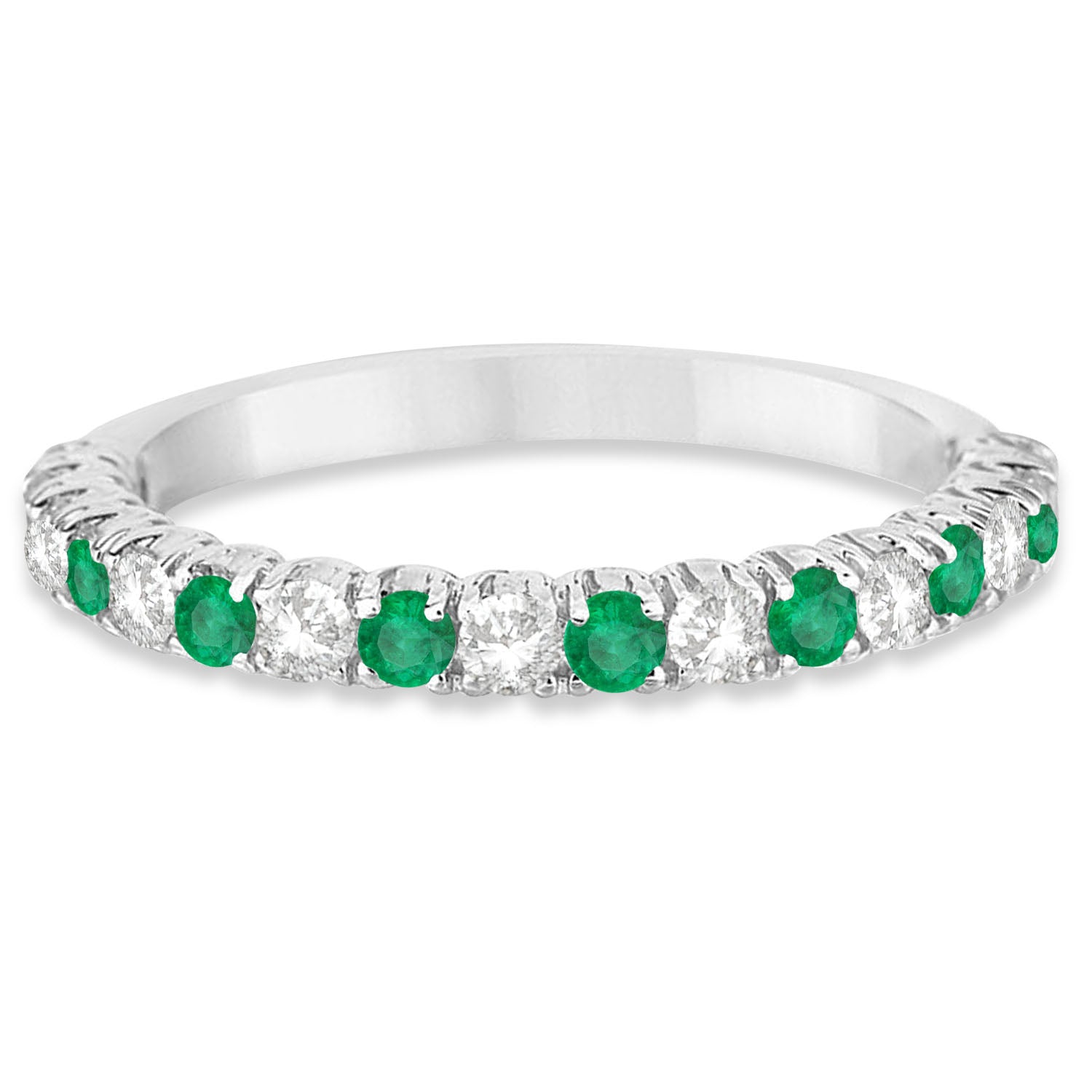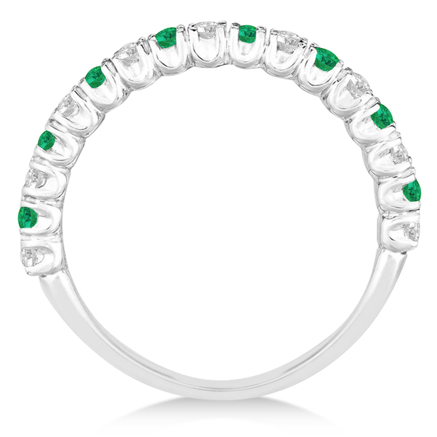 Emerald & Diamond Wedding Band Anniversary Ring in 14k White Gold (0.75ct)